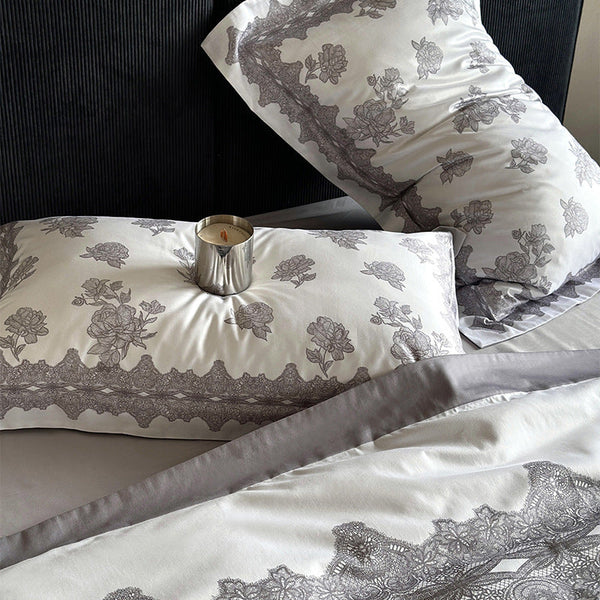 Spring and summer light luxury high-end 100s long-staple cotton printed bed four-piece set pure cotton wide-edge quilt cover cotton bed sheet 4