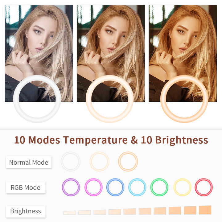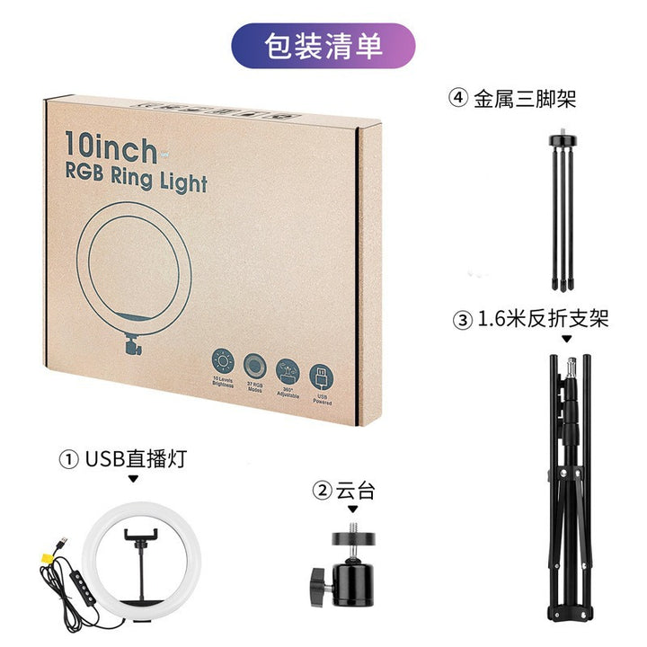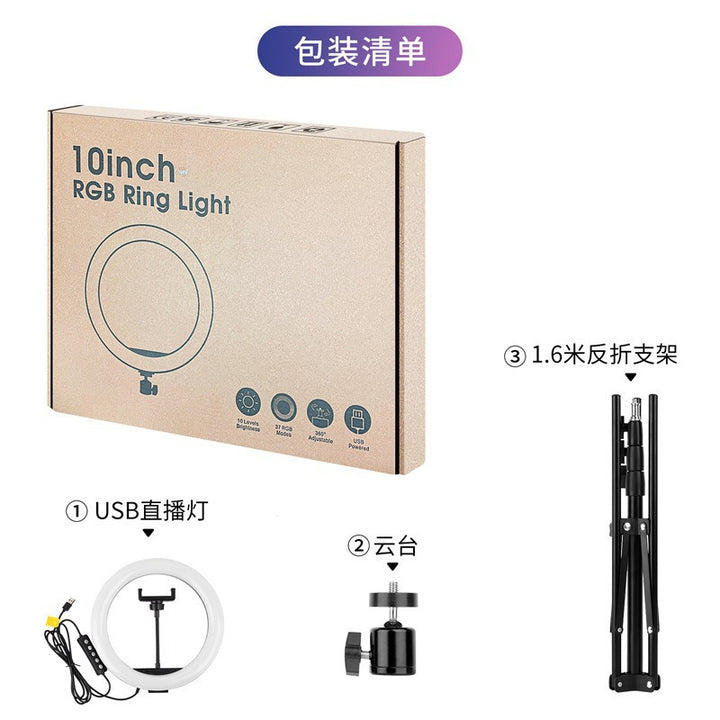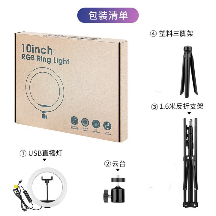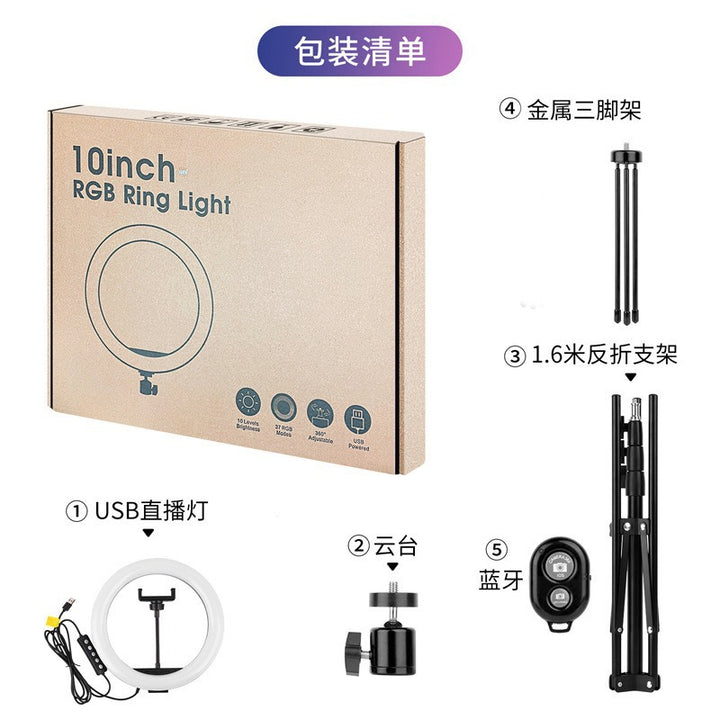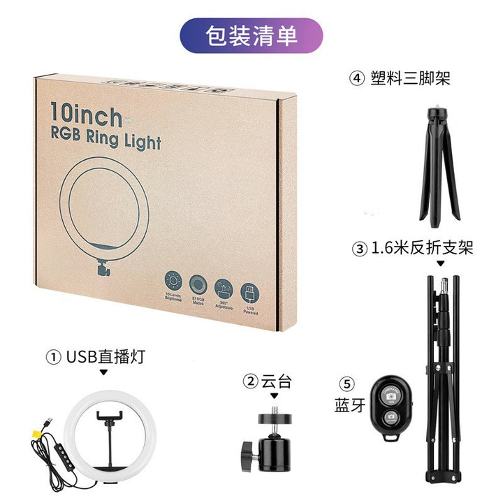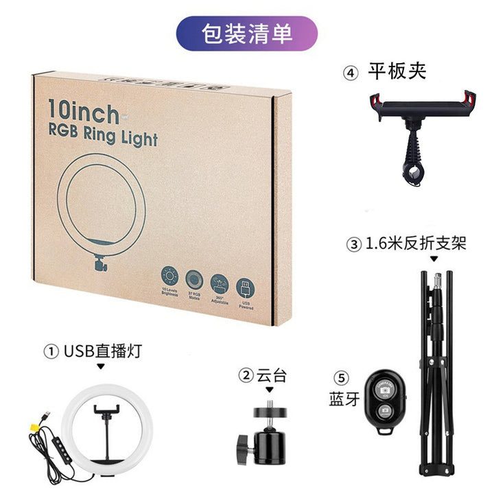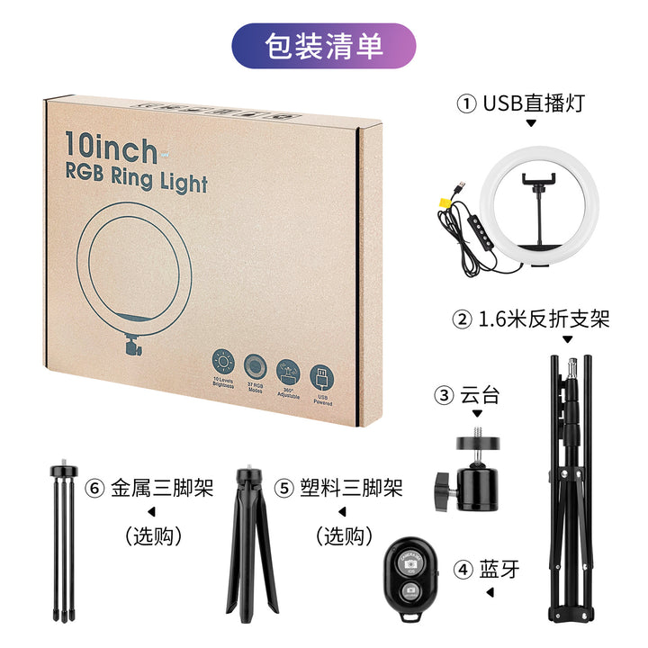 10寸RGB环形灯+1.6米反折支架【一体包装】, 10寸RGB环形灯+1.6米反折支架+桌面金属支架, 10寸RGB环形灯+1.6米反折支架+桌面金属支架+蓝牙自拍器, 10寸RGB环形灯+1.6米反折支架+桌面塑料支架, 10寸RGB环形灯+1.6米反折支架+桌面塑料支架+蓝牙自拍器, 10寸RGB环形灯+1.6米反折支架+平板夹+蓝牙遥控器 |