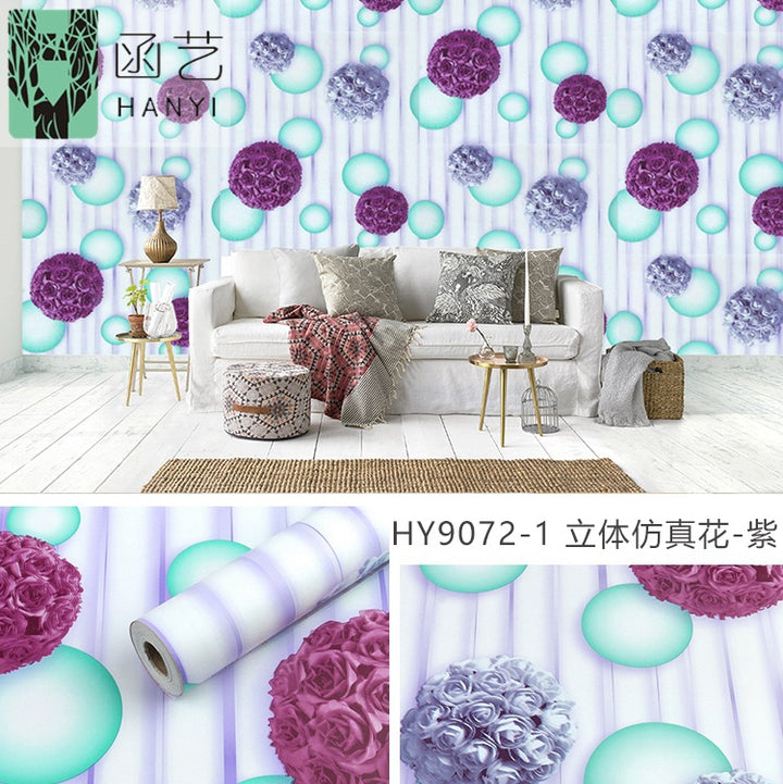 卧室电视墙背景墙贴防水PVC花卉墙纸自粘wallpaper壁纸墙布厂家