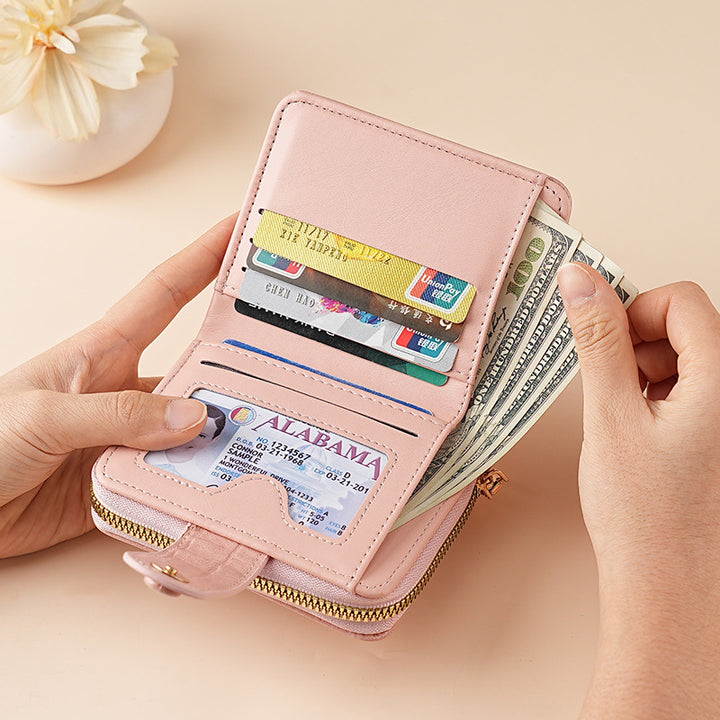 跨境新款石头纹女士钱包 多卡位大容量纯色高级感wallet零钱皮夹
