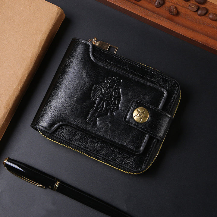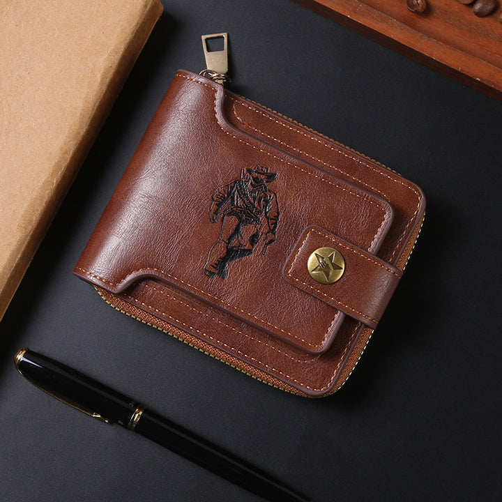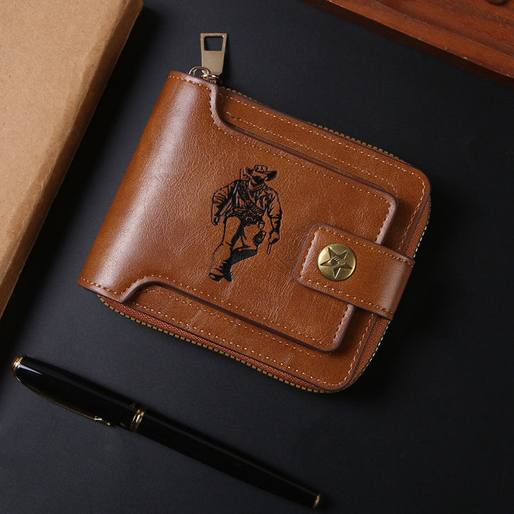跨境男士钱包短款复古时尚拉链包多卡位wallet大容量商务卡包随身