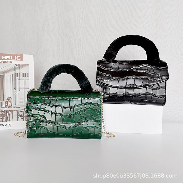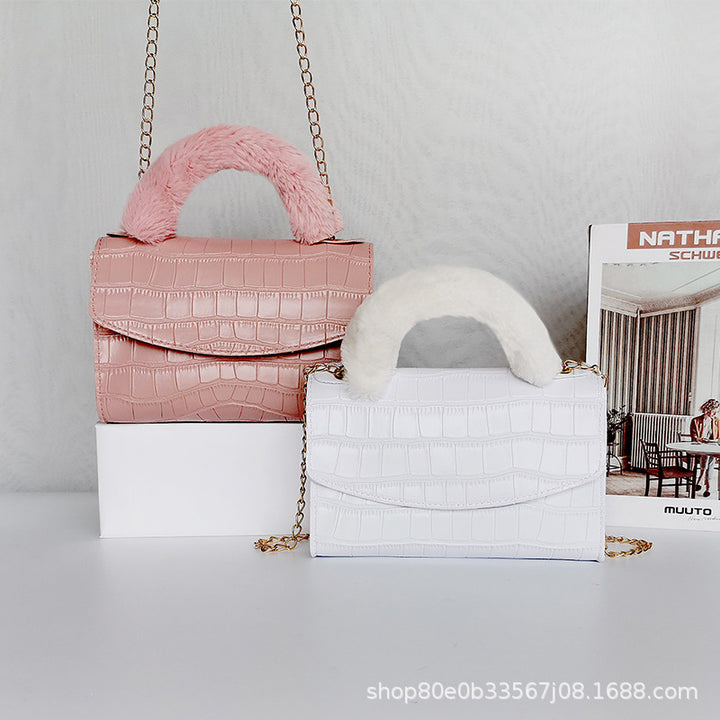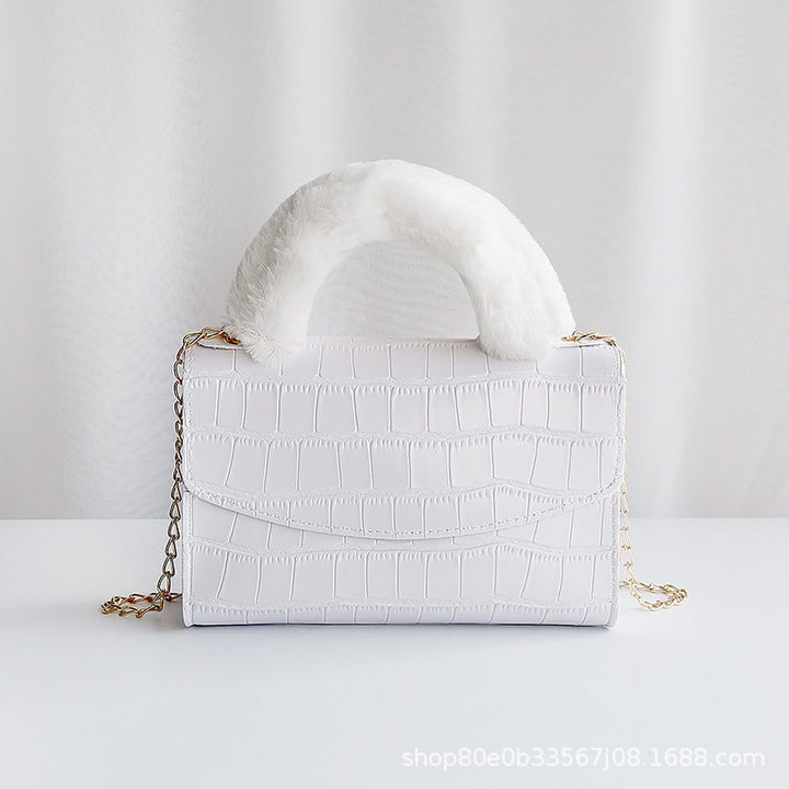 韩版毛绒手提包2021women handbag小包包女一件代发石头纹小方包