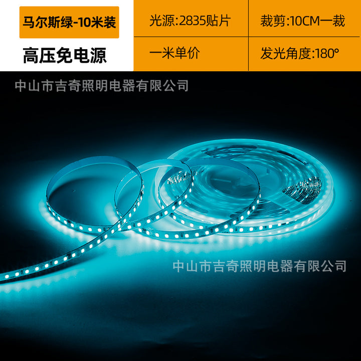 led灯带220V免驱-120灯裸板喷胶8mm-10米/卷-马尔斯绿