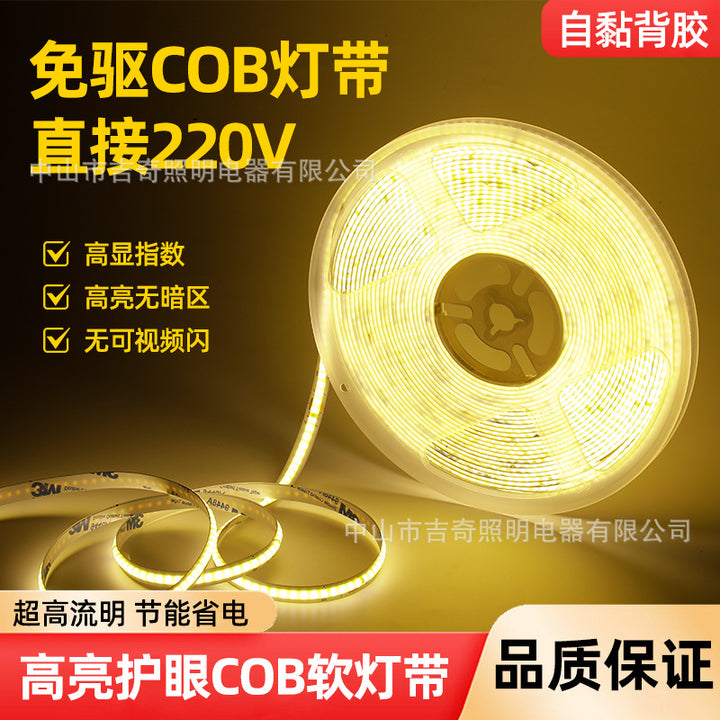 高压灯带专用led220Vcob线型灯条带背胶自粘高亮柔性吊顶家装照明