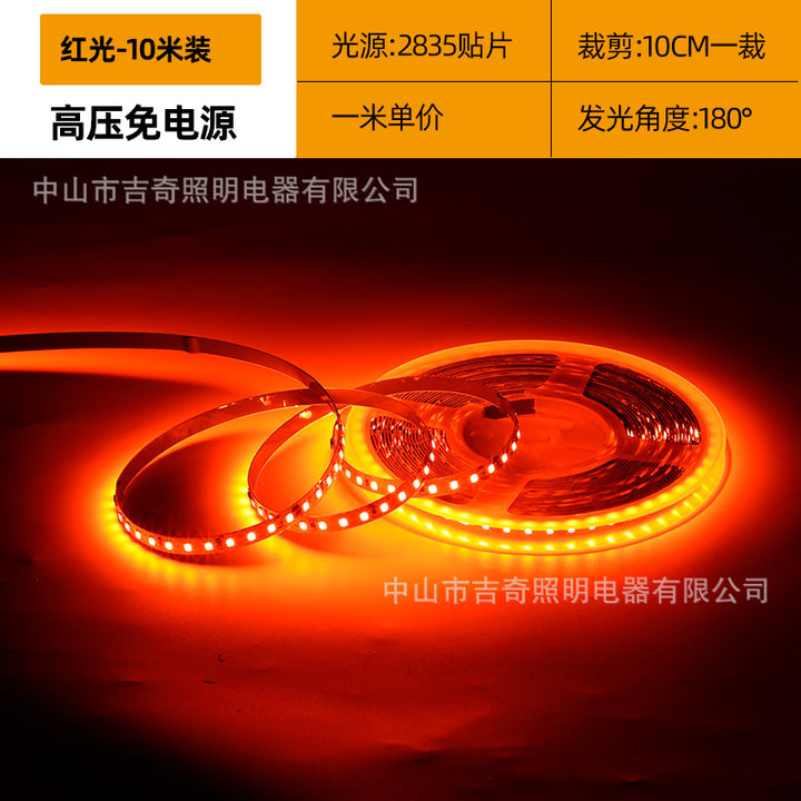 led灯带220V免驱-120灯裸板喷胶8mm-10米/卷-红光