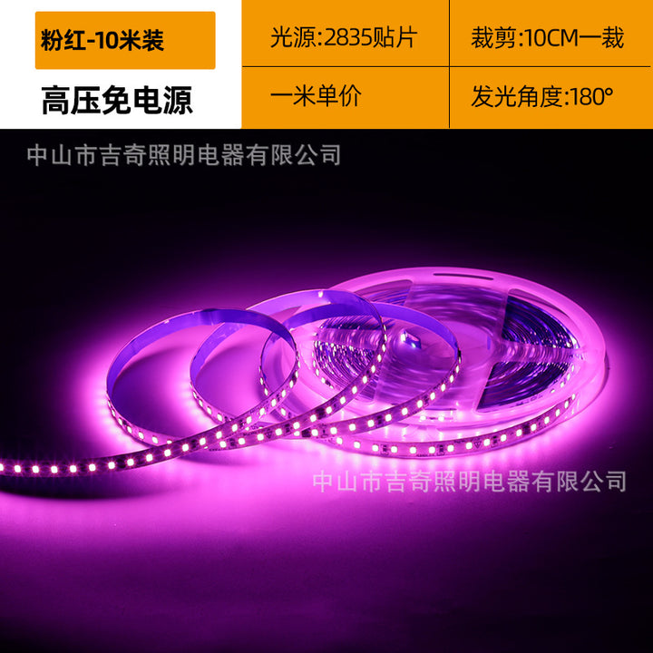 led灯带220V免驱-120灯裸板喷胶8mm-10米/卷-粉红光