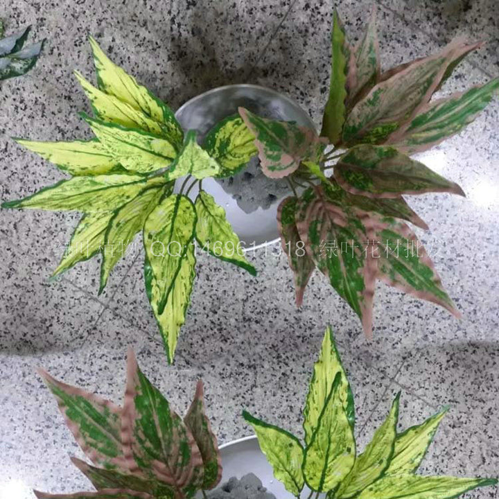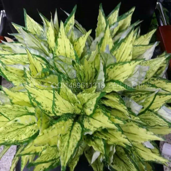 高档塑料黄斑尖叶小12头黄斑点叶 黄心树叶软装工程店铺装饰