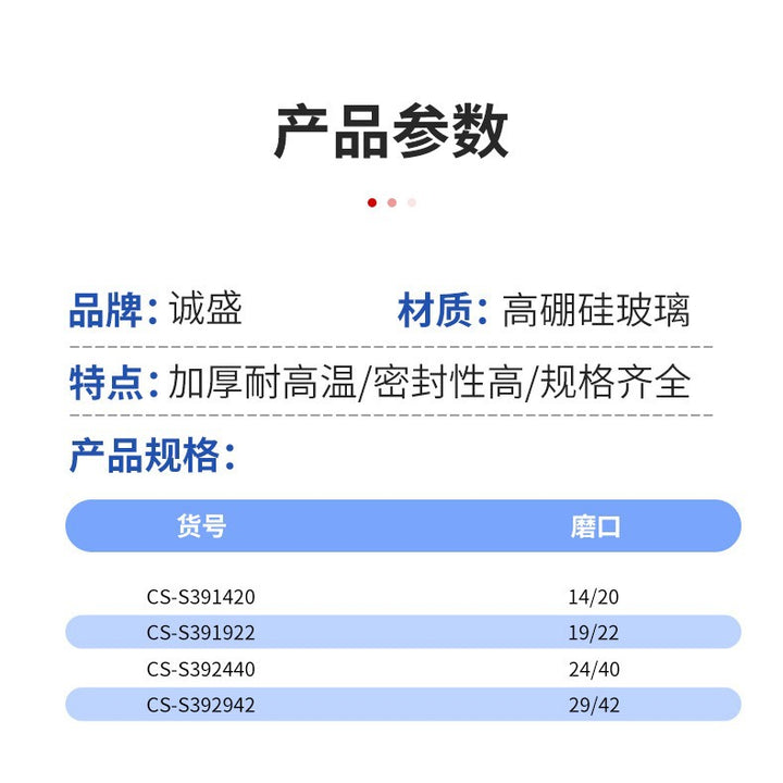 磨口14/20, 磨口19/22, 磨口24/40, 磨口29/42 |
