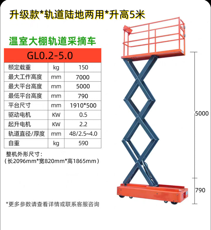 升级款*陆地轨道两用*升高2.5米, 升级款*陆地轨道两用*升高3米, 升级款*陆地轨道两用*升高3.5米, 升级款*陆地轨道两用*升高4米, 升级款*陆地轨道两用*升高5米 |