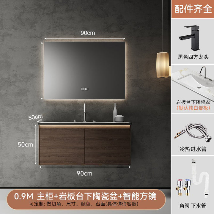 90CM rock slab ceramic under the stage basin + smart mirror cabinet