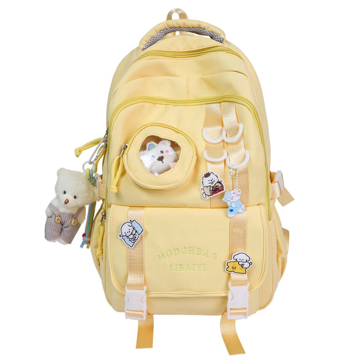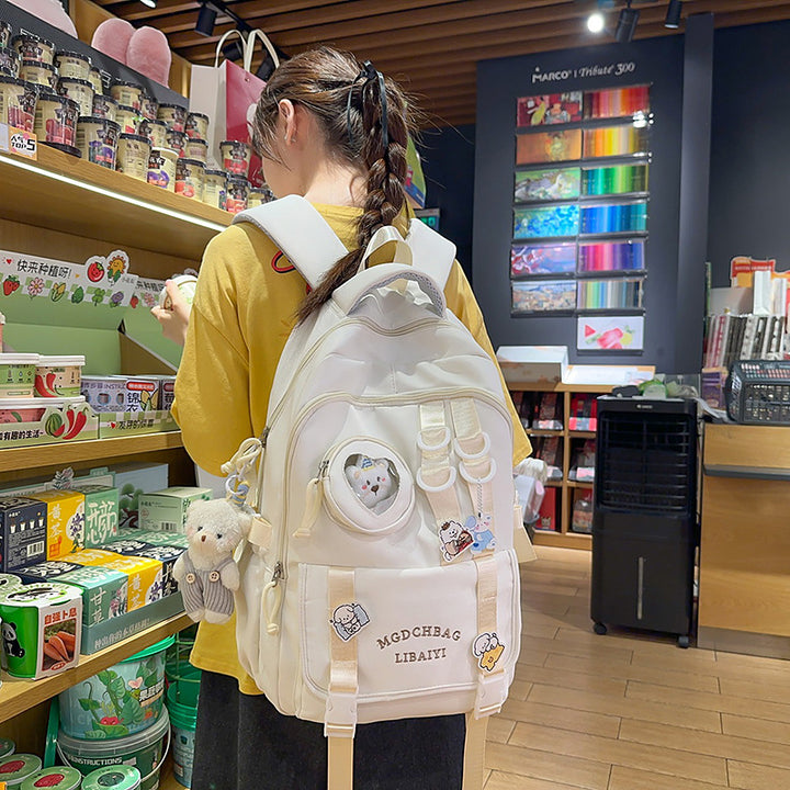 高颜值书包女大学生新款时尚拼色透明背包可爱初中生大容量双肩包