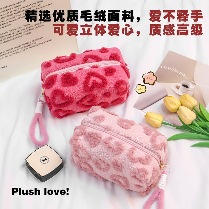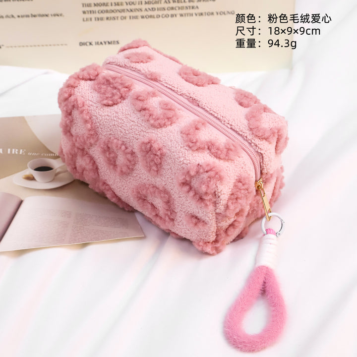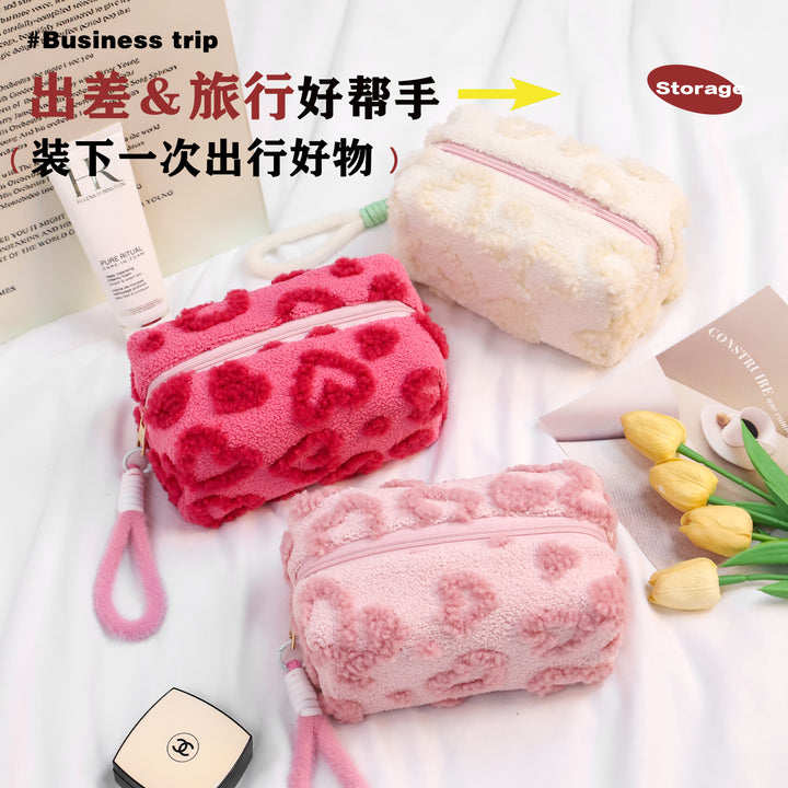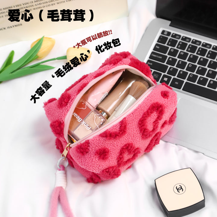 高颜值可拆卸手提化妆包ins甜美少女毛绒大容量可爱化妆品收纳包