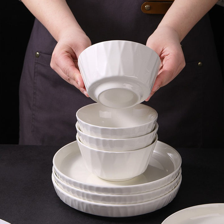 4.5英寸白莹玉碗10只, 4.5-inch Baiying jade bowl 8 pieces, 4.5-Inch Baiying Jade Bowl 6 pcs, 6 5-inch white jade bowls, 8 5-inch white jade bowls, 4 8-inch white jade plates, 6 8-inch white jade plates |