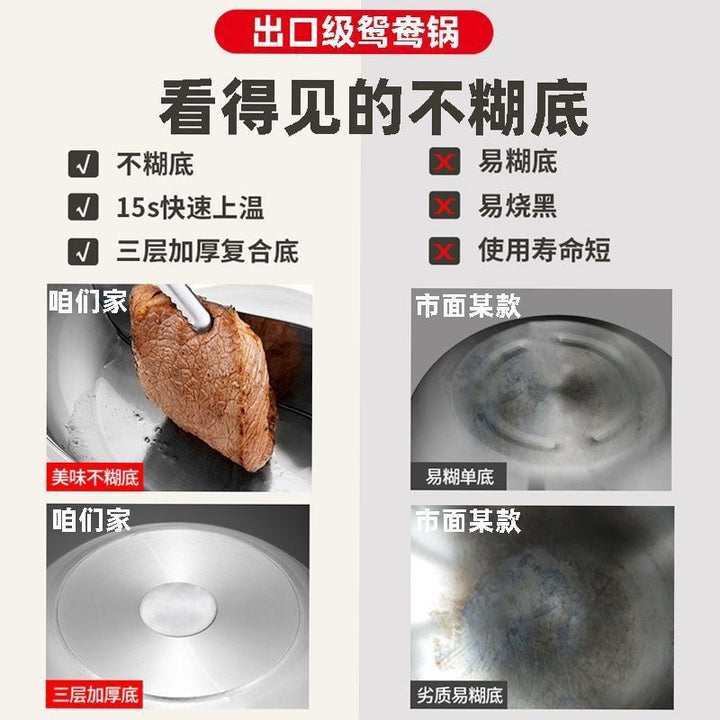 加厚304鸳鸯锅无盖, Thickened 304 half-and-half duck pot with lid, 304 clear soup pot without lid, 304清汤锅有盖 |