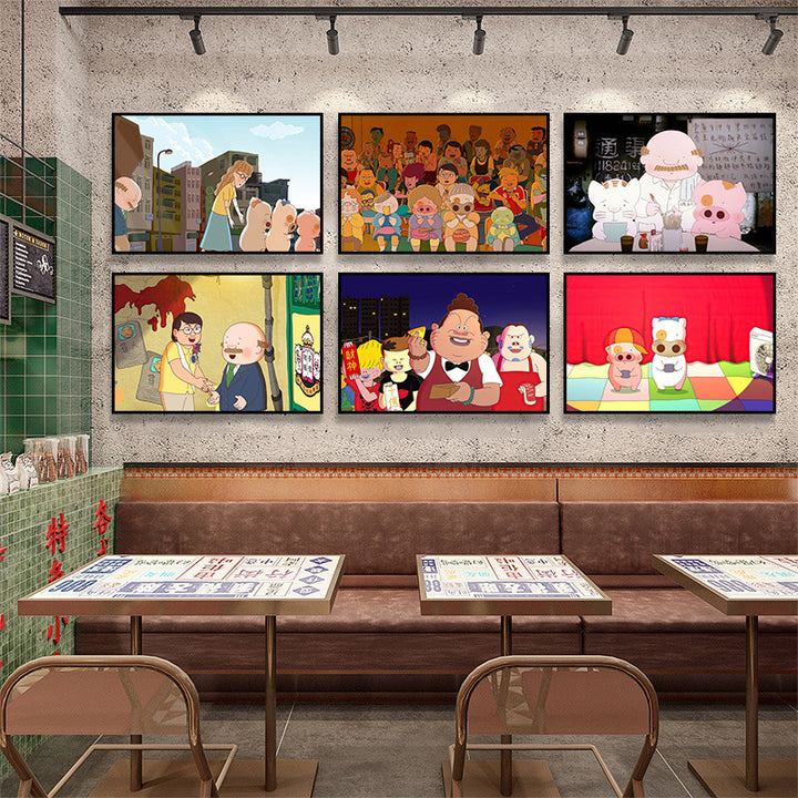 麦兜故事装饰画怀旧香港动画电影港风海报小猪壁画港式茶餐厅挂画
