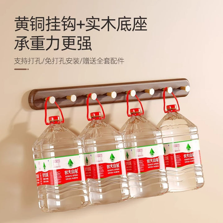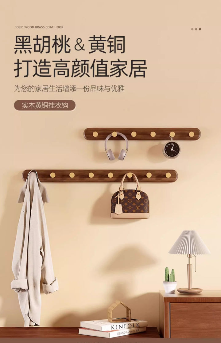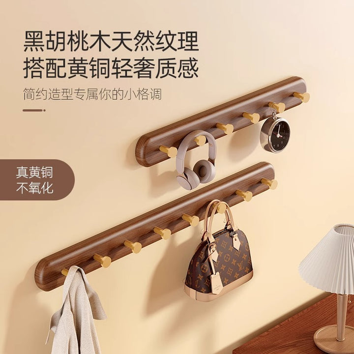 黑胡桃木+黄铜T形挂钩6钩【赠送安装配件】
