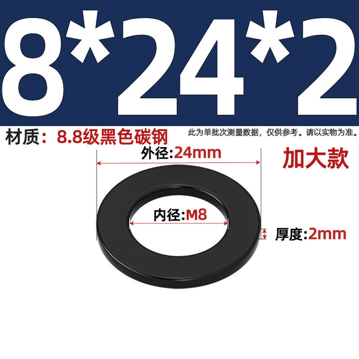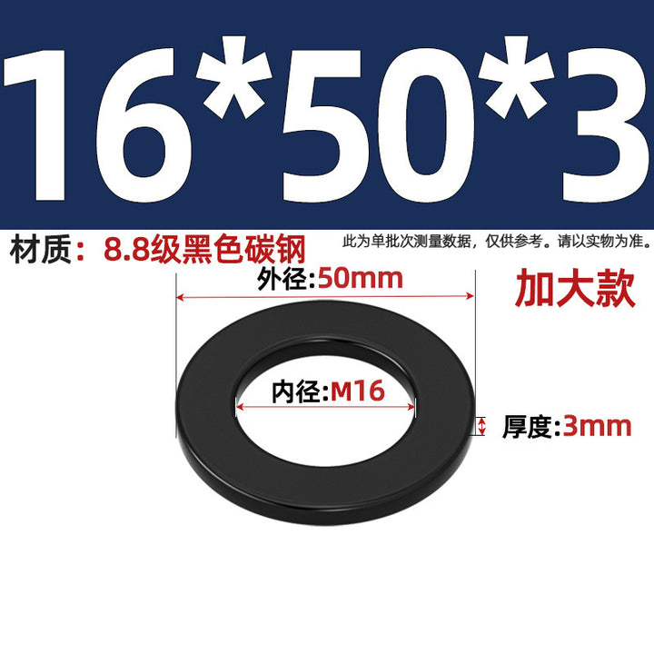M2*5*0.5-10个, M2.5*5.5*0.5-10个, M3*7*0.5-10个, M3 * 9 * 0.8 [Large] -10 pcs, M4 * 9 * 0.8-10, M4 * 12 * 1 [Large] -10 pcs, M5 * 10 * 1-10 pieces, M5 * 15 * 1.2 [Large] -1 piece, M6 * 12 * 1.5-10, M6 * 18 * 1.5 [Large] -1 piece, M8 * 16 * 1.6-10, M8 * 24 * 2 [Large] -1 piece, M10 * 20 * 2-10 pieces, M10 * 30 * 2.5 [Large] -1 piece, M12 * 24 * 2.5-10, M12 * 37 * 3 [Large] -1 piece, M14 * 28 * 2.5-1, M14 * 44 * 3 [Large] -1 piece, M16*30*3-1个, M16*50*3【加大】-1个, M18*34*3-1个, M18*56*4【加大】-1个, M20*37*3-1个, M20*60*4【加大】-1个, M22 * 39 * 3-1 piece, M22 * 66 * 5 [Large] -1 piece, M24 * 44 * 4-1 piece, M24 * 70 * 5 [Large] -1 piece, M27 * 50 * 4-1 piece, M30 * 56 * 4-1 piece, M33 * 60 * 5-1 piece, M36 * 66 * 5-1 piece, M39 * 72 * 6-1 piece, M42 * 78 * 7-1 piece, M45 * 85 * 7.5-1, M48 * 92 * 8-1 piece, M52 * 98 * 8-1 piece, M56 * 105 * 10-1 piece, M64*115*10-1个 |