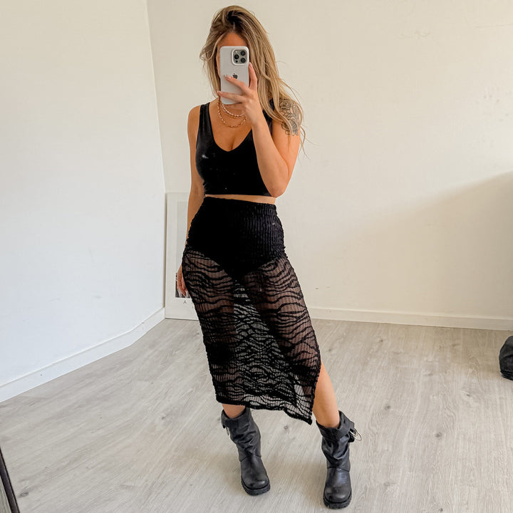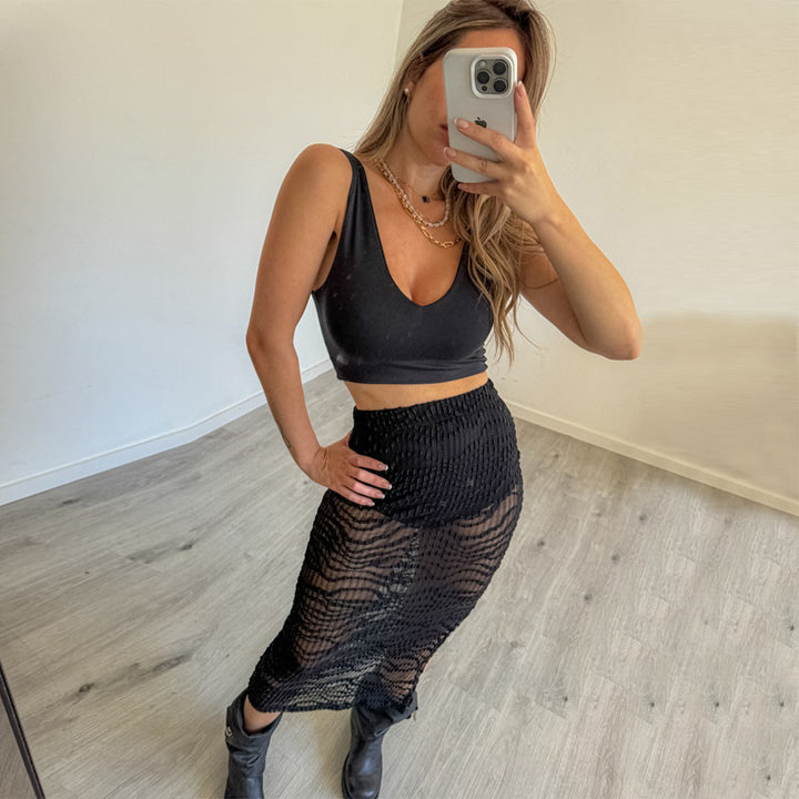 041586SBG exclusive 2024 autumn new product slim perspective jacquard European and American mesh yarn, skirt, women