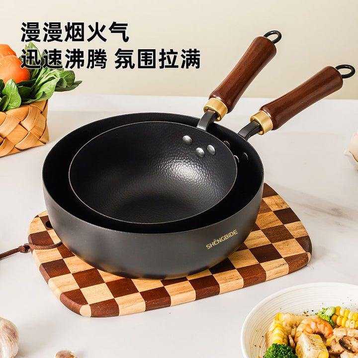1.5 cm thickened Japanese iron pan non-stick pan, uncoated wok, household wok, nitriding pan, gas stove suitable