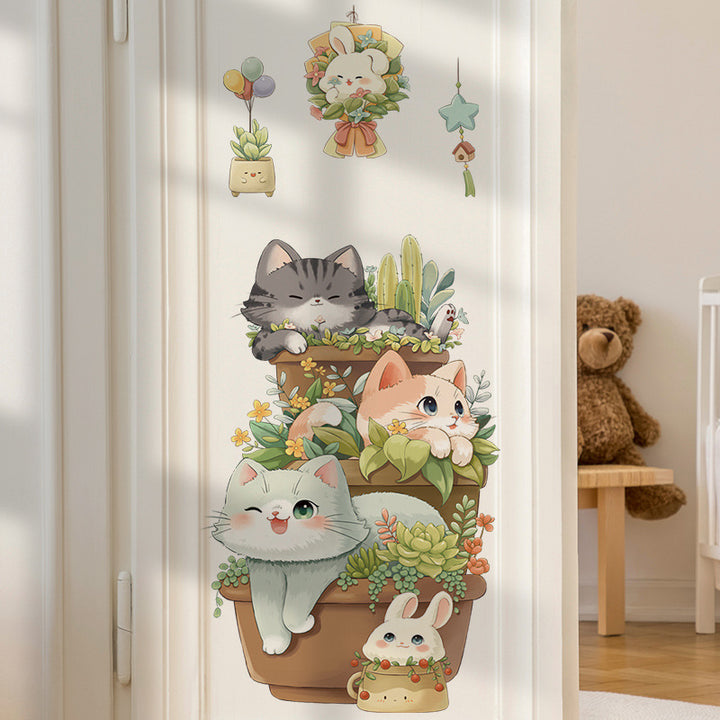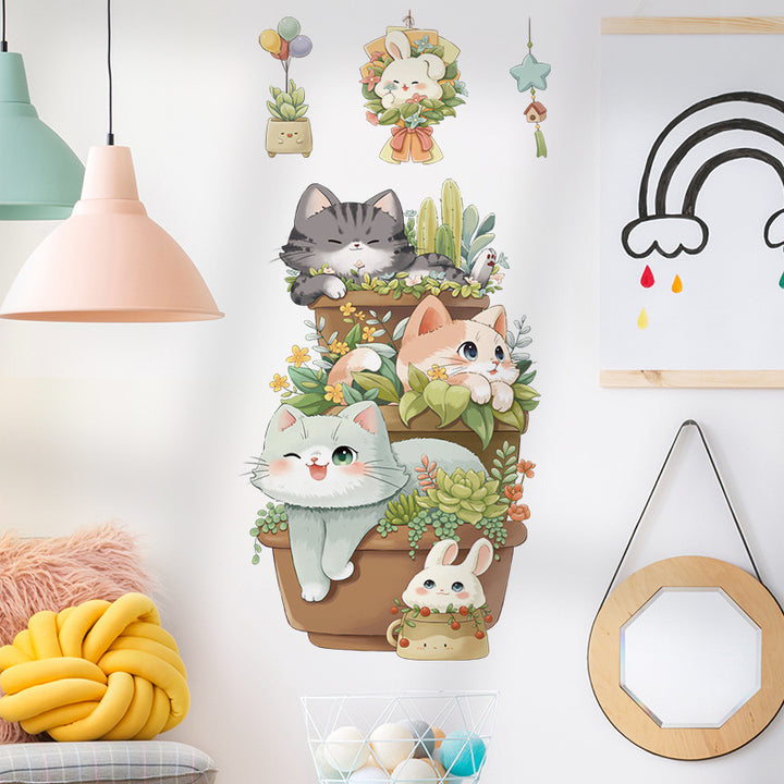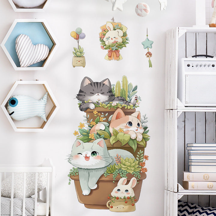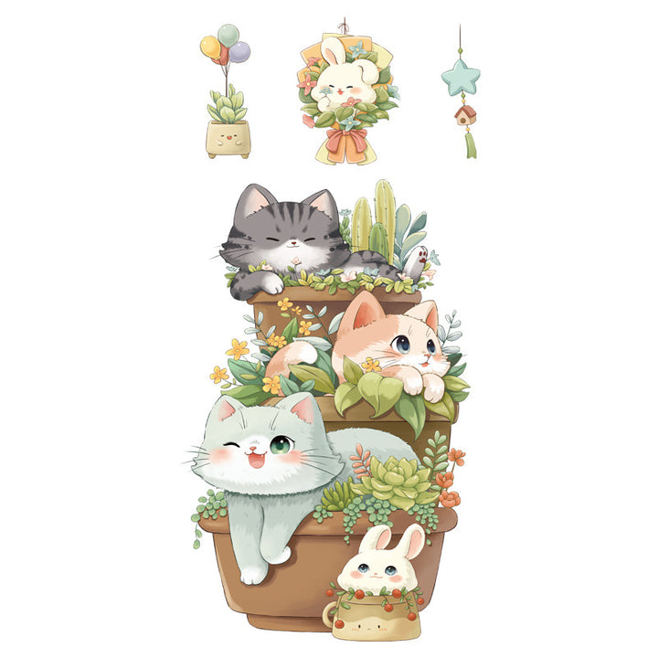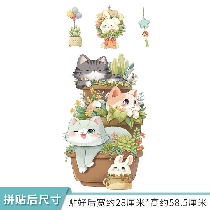 1 cute animal children's room decorative sticker cartoon cat potted plant bathroom sticker wholesale wall sticker