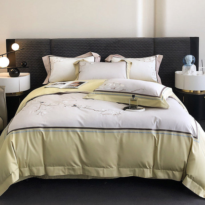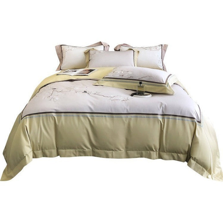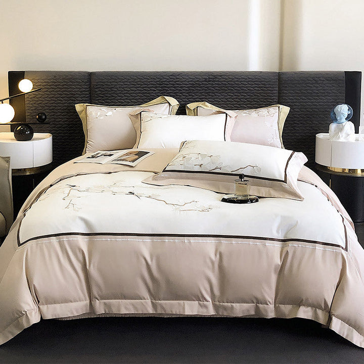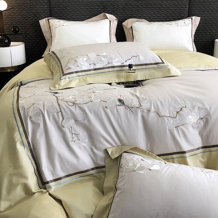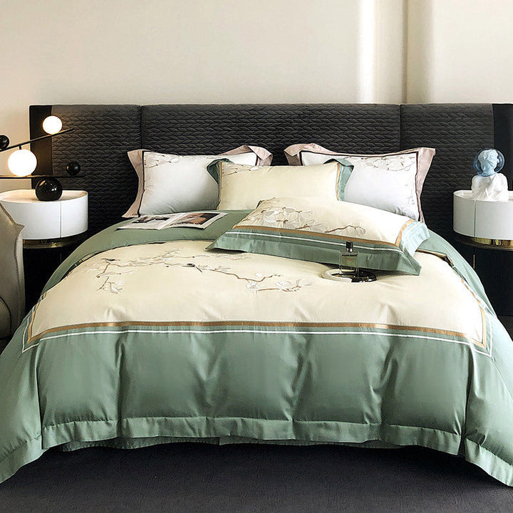 100s long-staple cotton cotton bed sheet quilt cover four-piece flower and bird embroidery new Chinese style pure cotton bedding wholesale