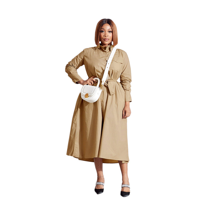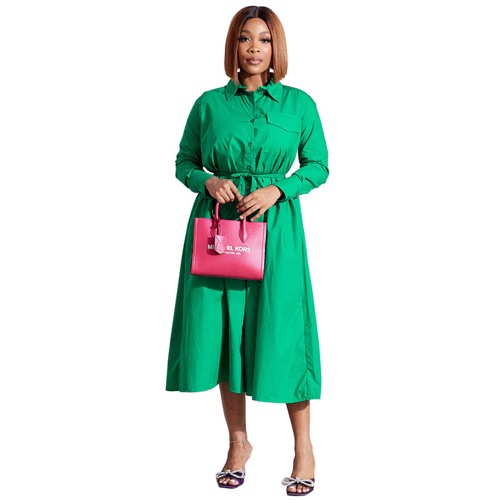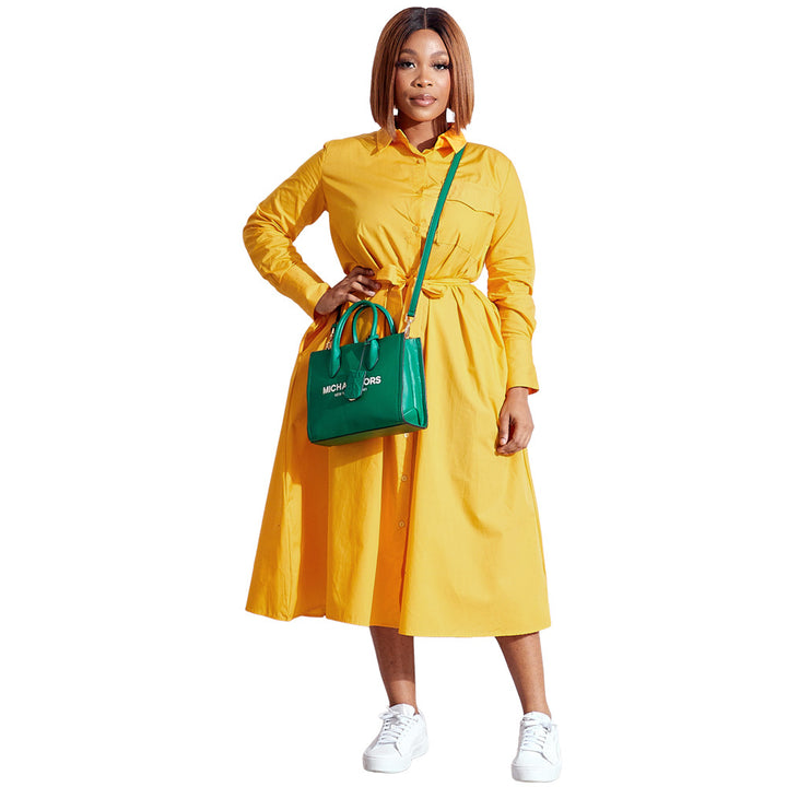 10211 Cross-border Europe, America, Spring and Summer Casual Long Sleeve Polo Collar Medium and Long Shirt Women's Dress