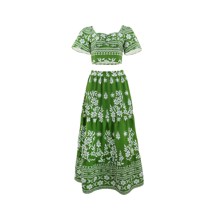 10715 Cross-border Europe, America, Women's Vacation Casual Printed Short Sleeve T-Shirt Top Skirt Two-piece Set