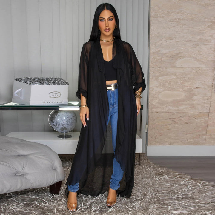 10834 Europe Russian Women's Casual Chiffon Shirt Europe and America Popular Long Cardigan Sunscreen Jacket