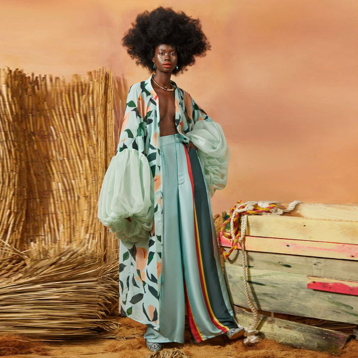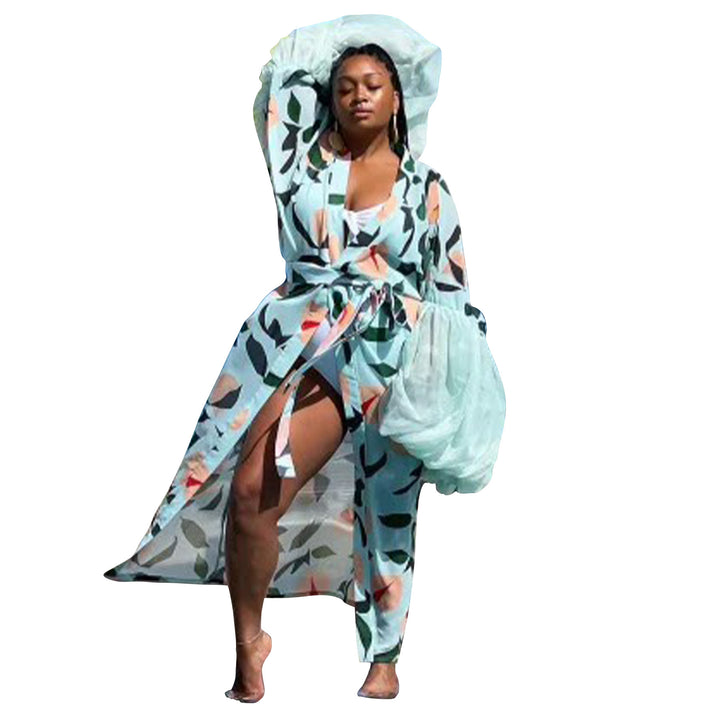10889 Russian European Women's Cardigan Seaside Holiday Sunscreen Shirt Beach Print Blouse Jacket