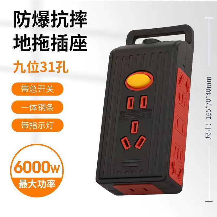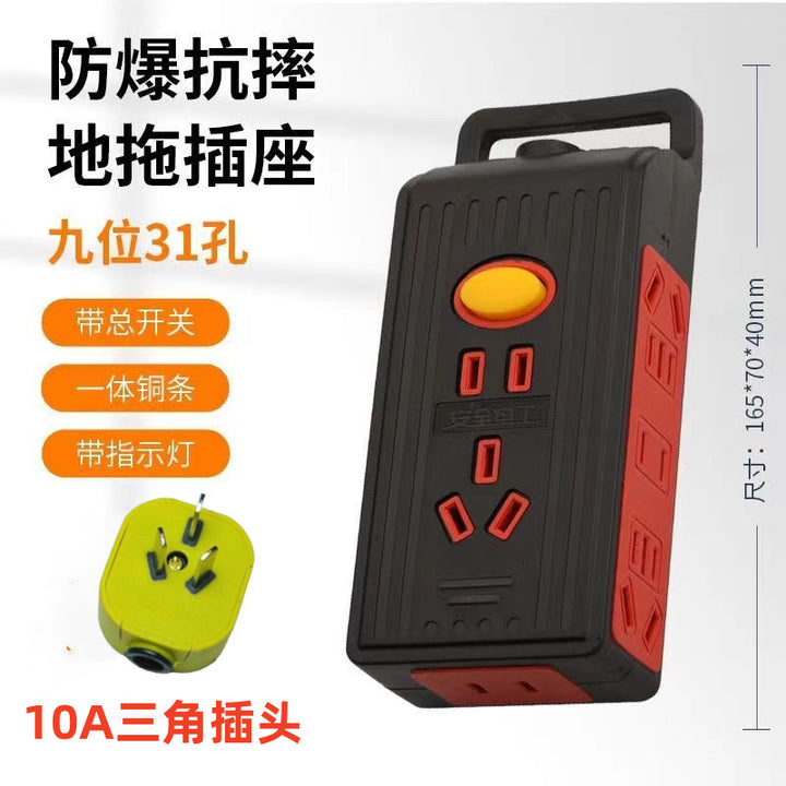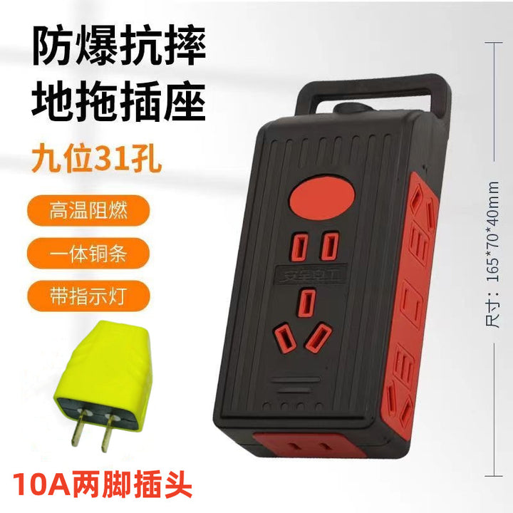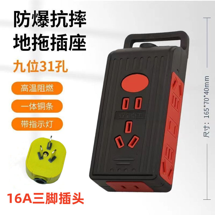 10A16A pure copper high-power 8000-watt socket anti-drop construction site household electric welding machine floor drag socket wiring board