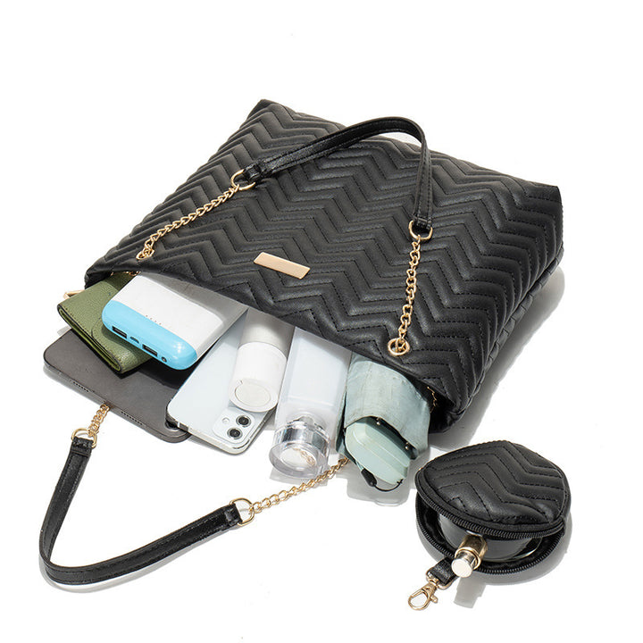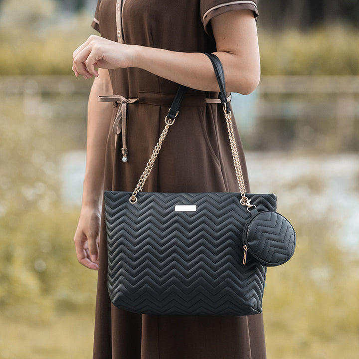 2-piece set of wave embossed child and mother tote bag 2024 fashionable embroidery sequins large-capacity shoulder handbag