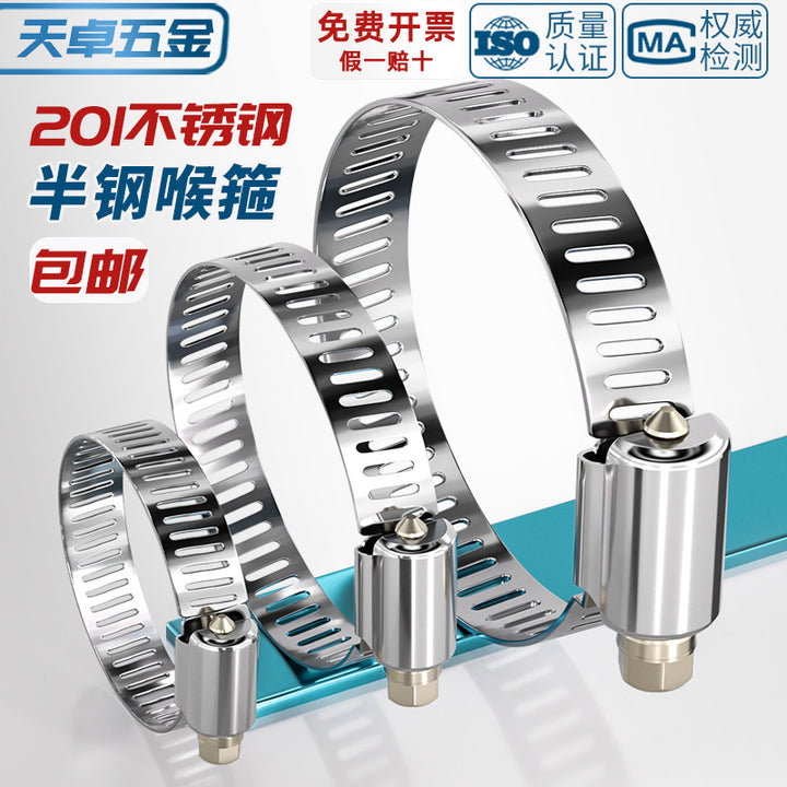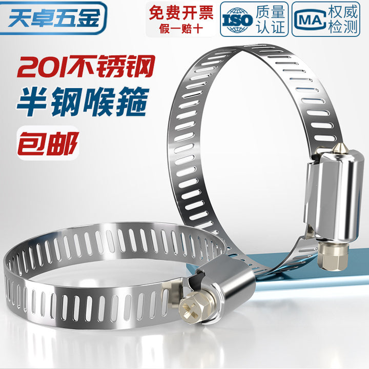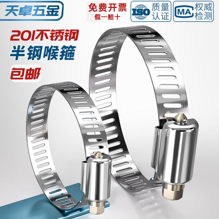 201 semi-steel throat hoop, stainless steel Xiaomei clamp, car pipe clamp, gas range hood water pipe cross clamp