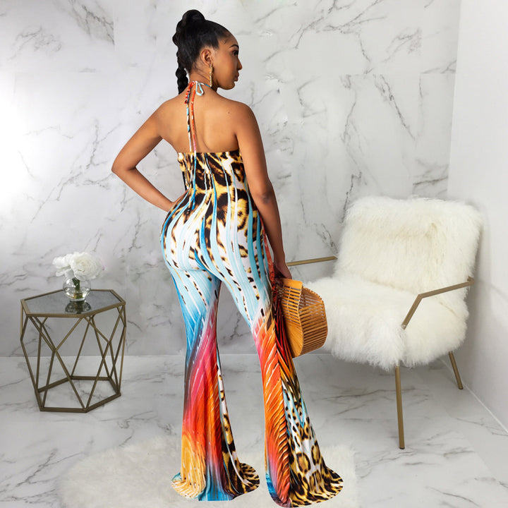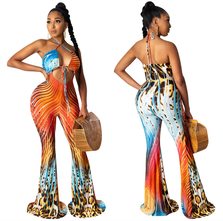 2021 Europe and the United States women's clothing, printed vest suspender jumpsuit women's casual pants