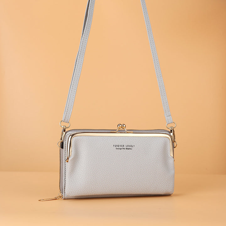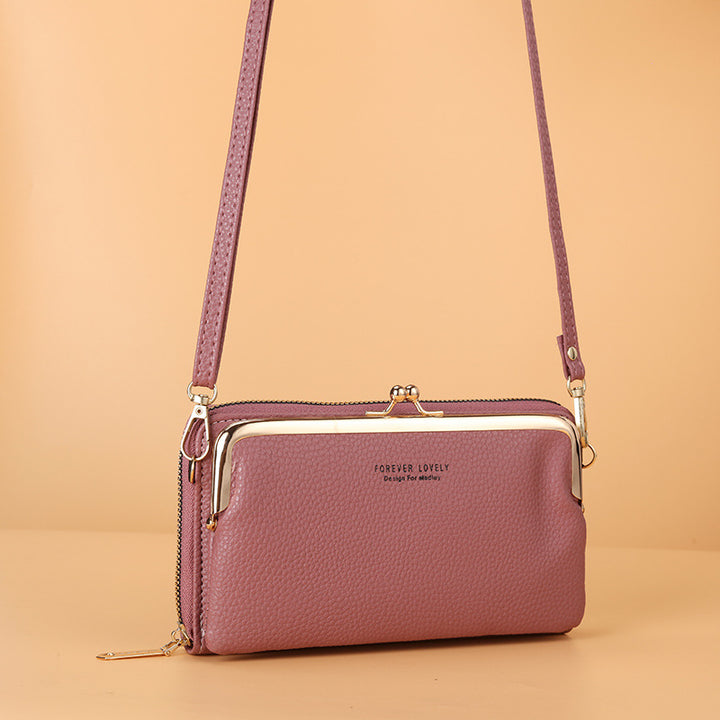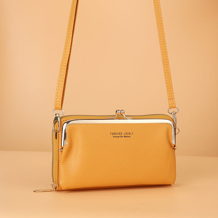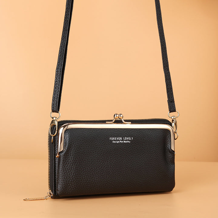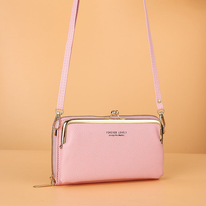 2021 new women's long hand large capacity double-layer mobile phone wallet clip lock zipper shoulder messenger bag