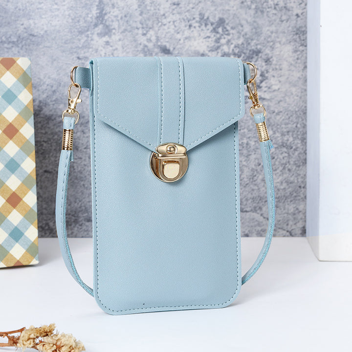 2022 new women's trendy lock, messenger pu leather touch screen mobile phone wallet, female retro student buckle small wallet