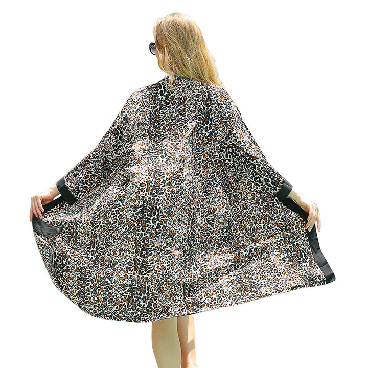 2023 Foreign Trade Cross-border European and American Women's Clothing Leopard Print Swimming Cardigan Cloak Beach Blouse Sunscreen Long