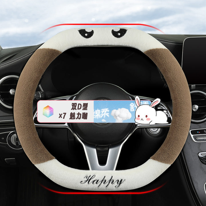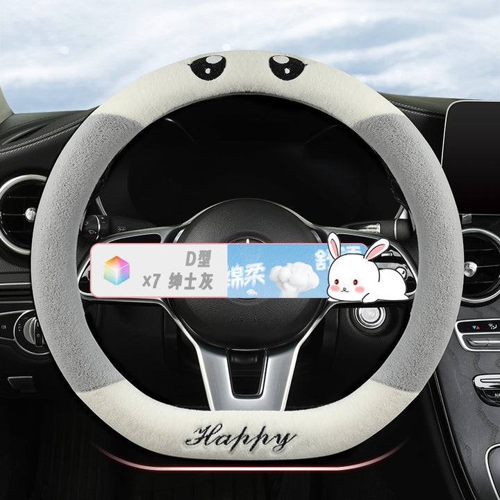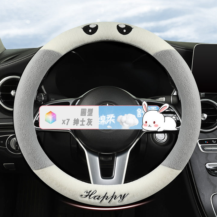 2023 new car steering wheel cover winter plush handle cover warm handle cover cute handle cover cartoon eye hair