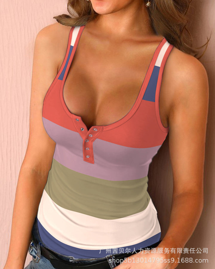 2023 new women's clothing European and American fashion, positioning printed sleeveless top