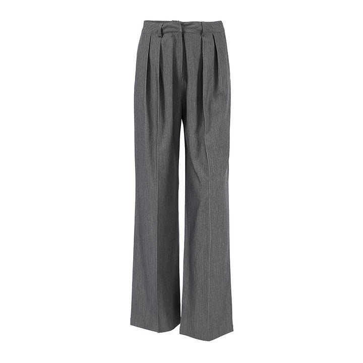 2024 autumn and winter versatile gray pleated trousers women's professional commuting drape high waist straight suit pants European and American wo...