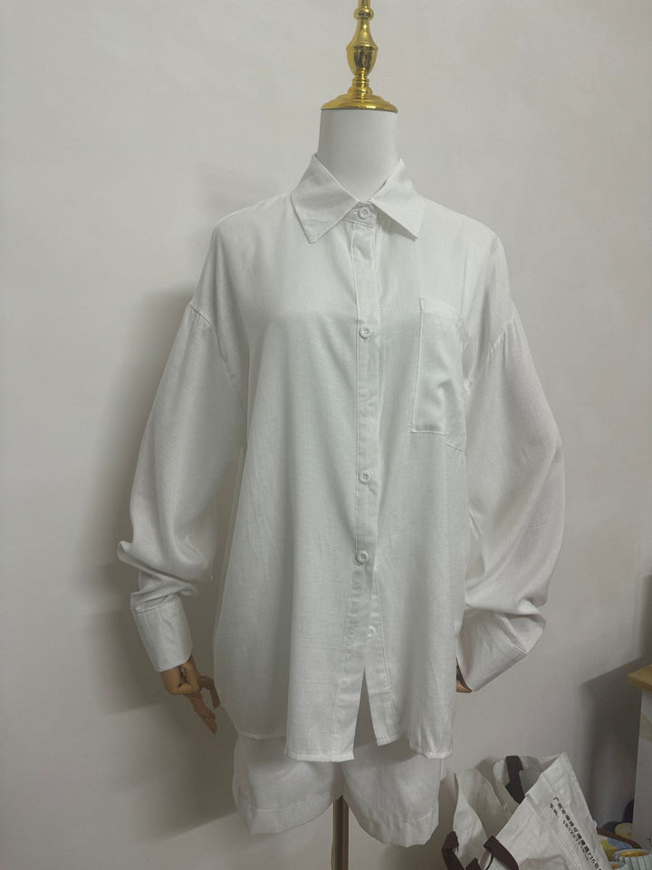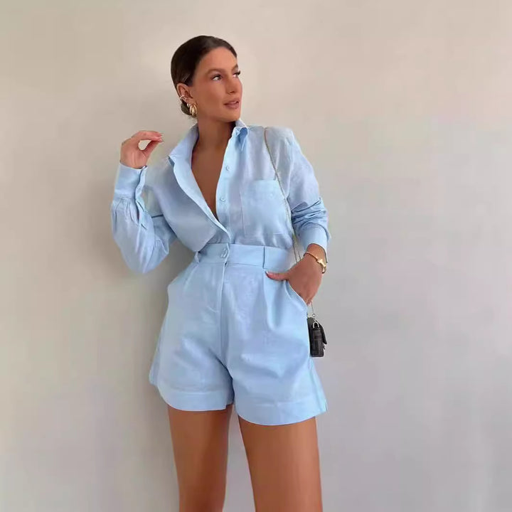 2024 autumn Europe and the United States women's clothing new loose solid color casual shirt high waist shorts fashion suit women