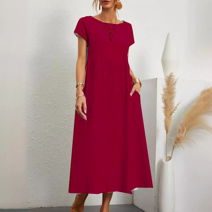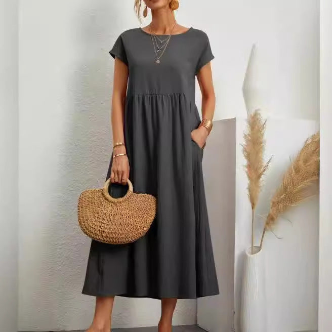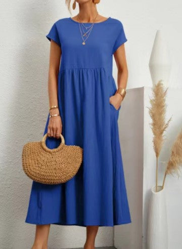 , 2024 Europe and America solid color sleeveless loose cotton and linen pocket, dress, spot.