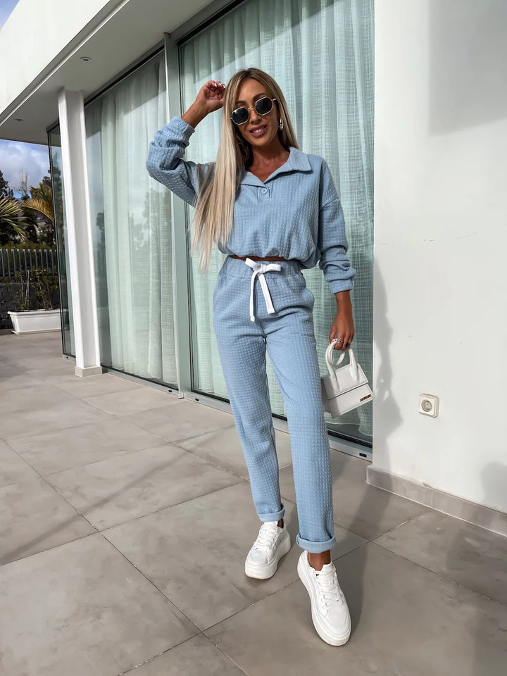 2024 European and American fashion suit loose long-sleeved lapel kangaroo pocket sweater drawstring casual trousers