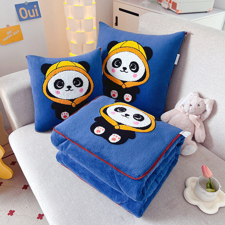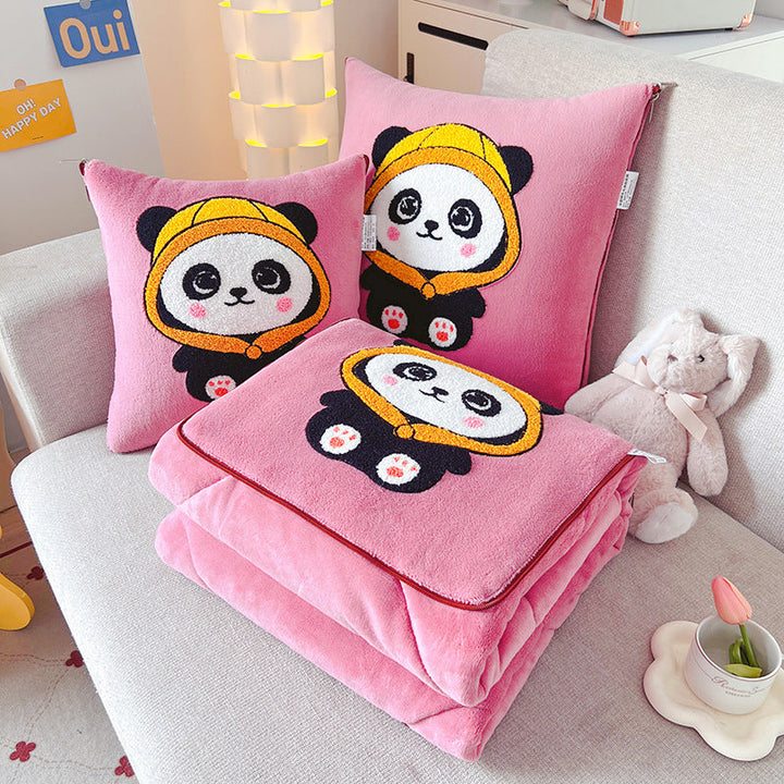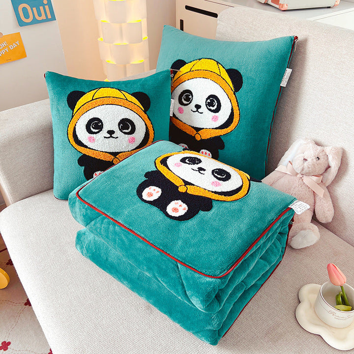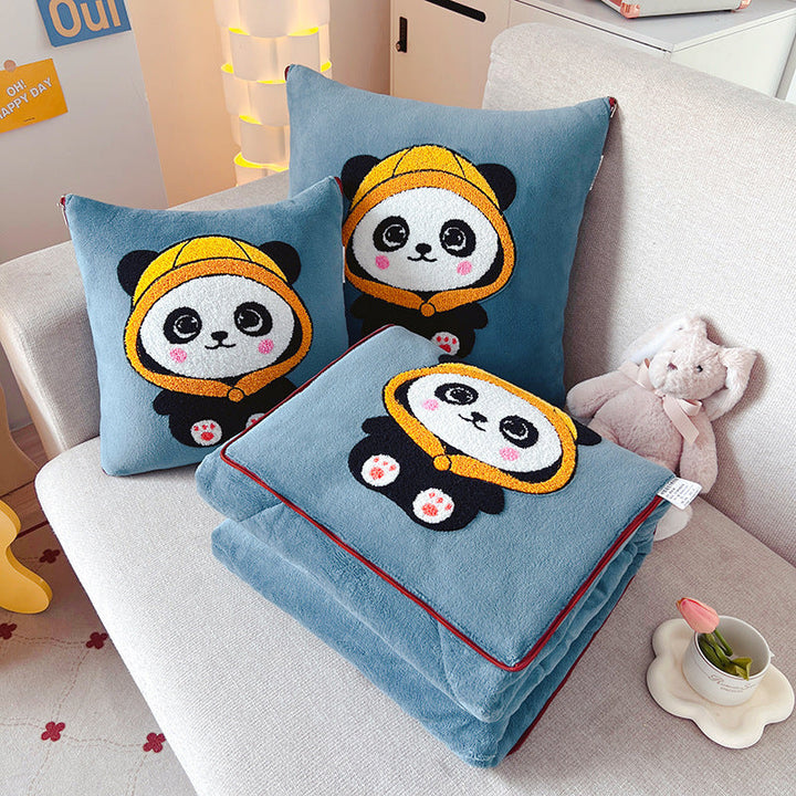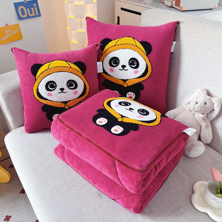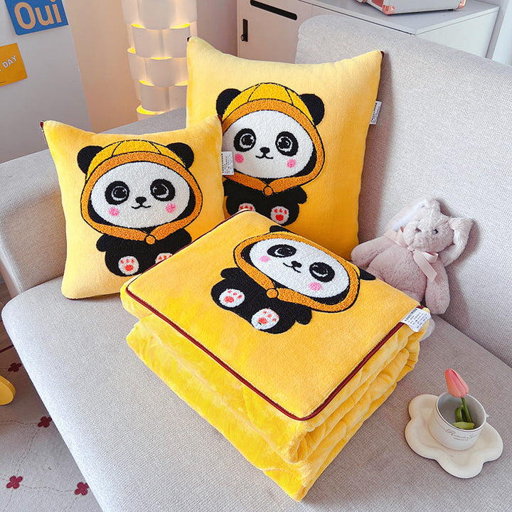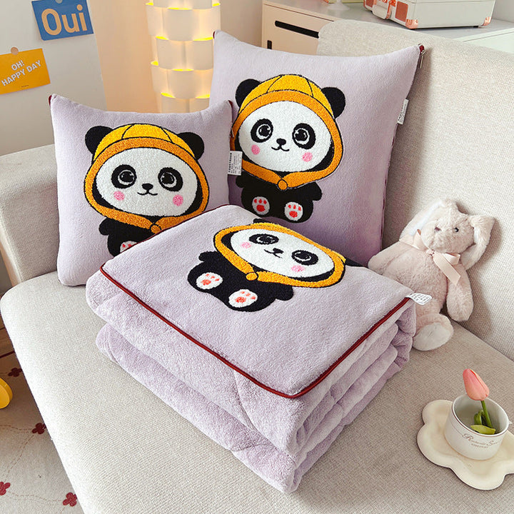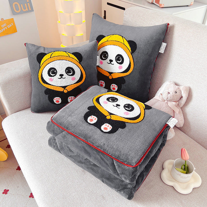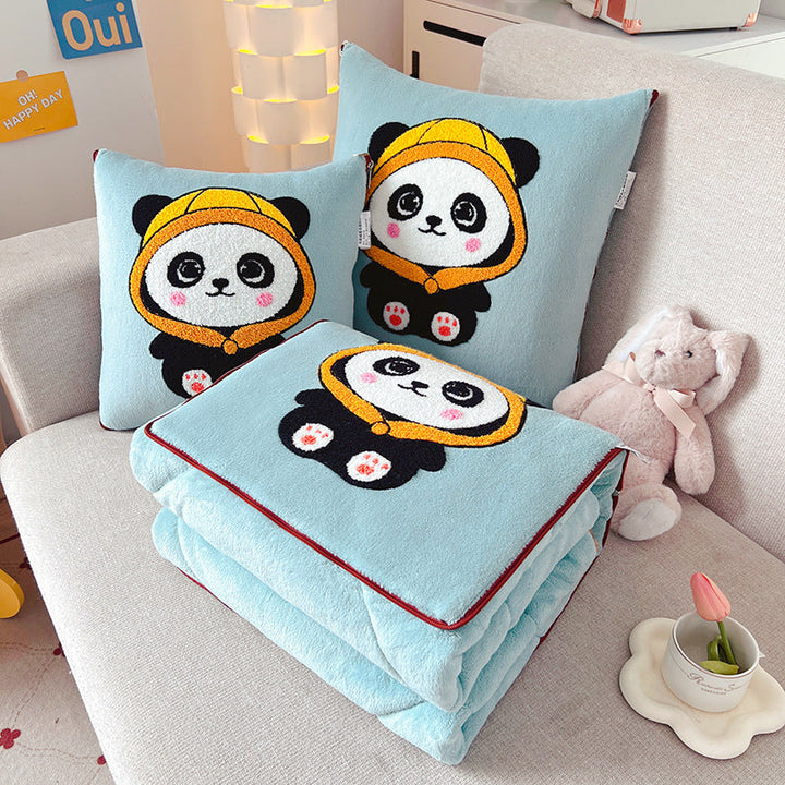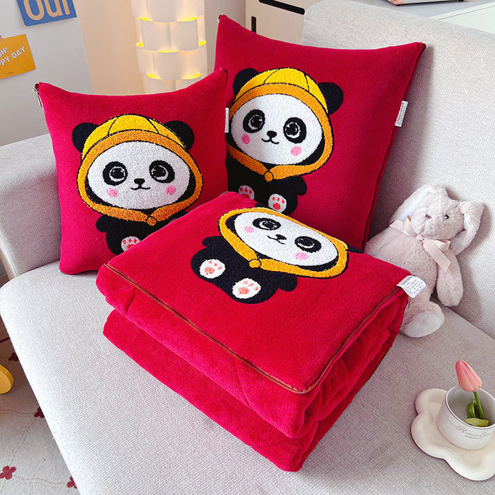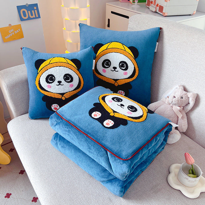 2024 new double-sided velvet thickened panda towel embroidered multi-functional throw pillow quilt milk velvet cushion quilt arctic velvet thick