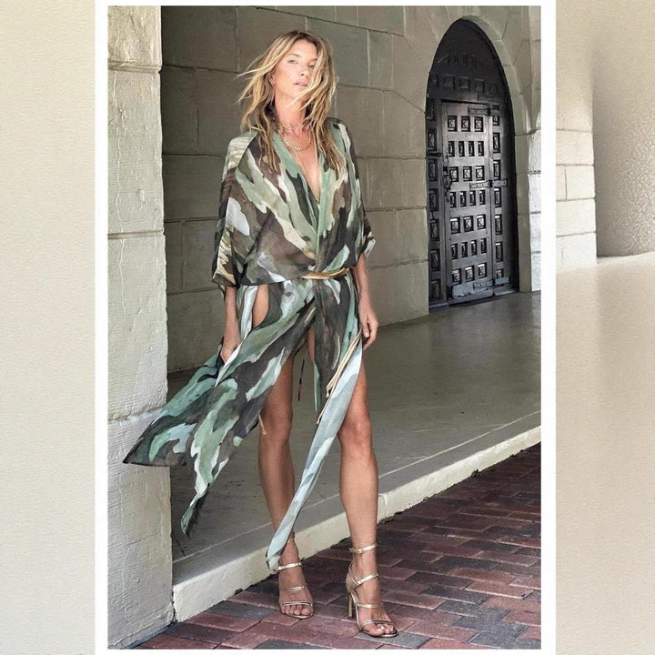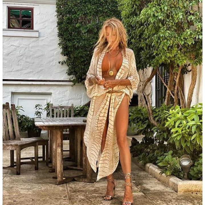2024 new summer printing large size sunscreen beach loose vacation chiffon cardigan women
