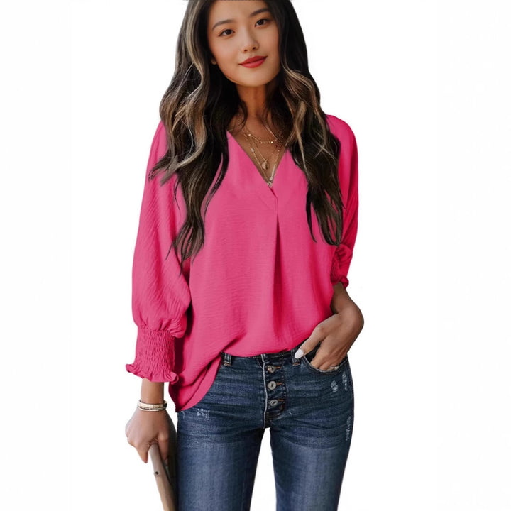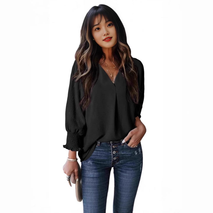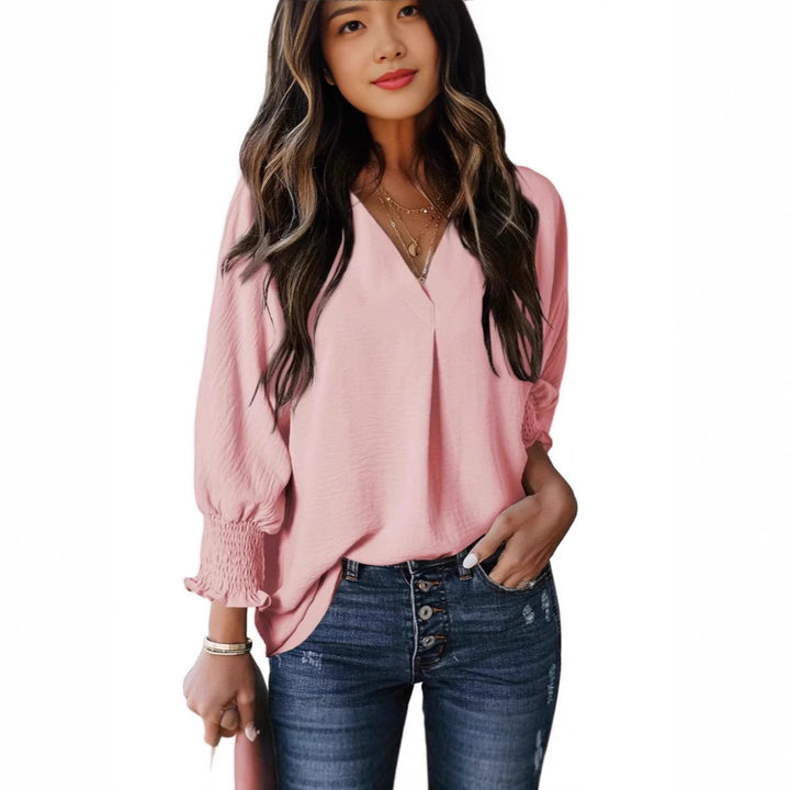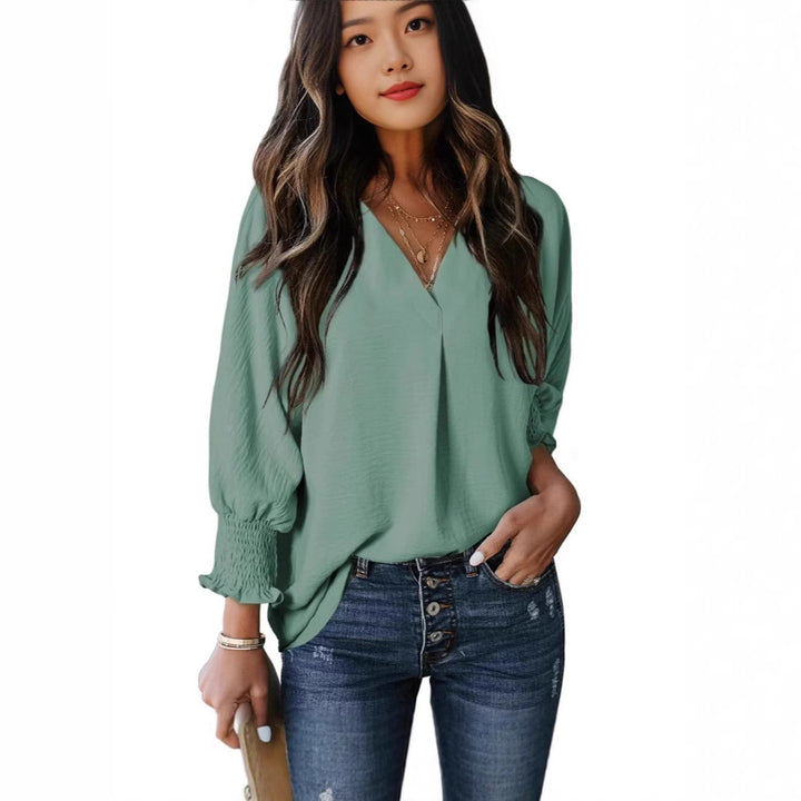 2024 Women's Tunic Top V-Neck Casual Loose Seven-Sleeve Shirt Dress Shirt Top Blouse T-Shirt