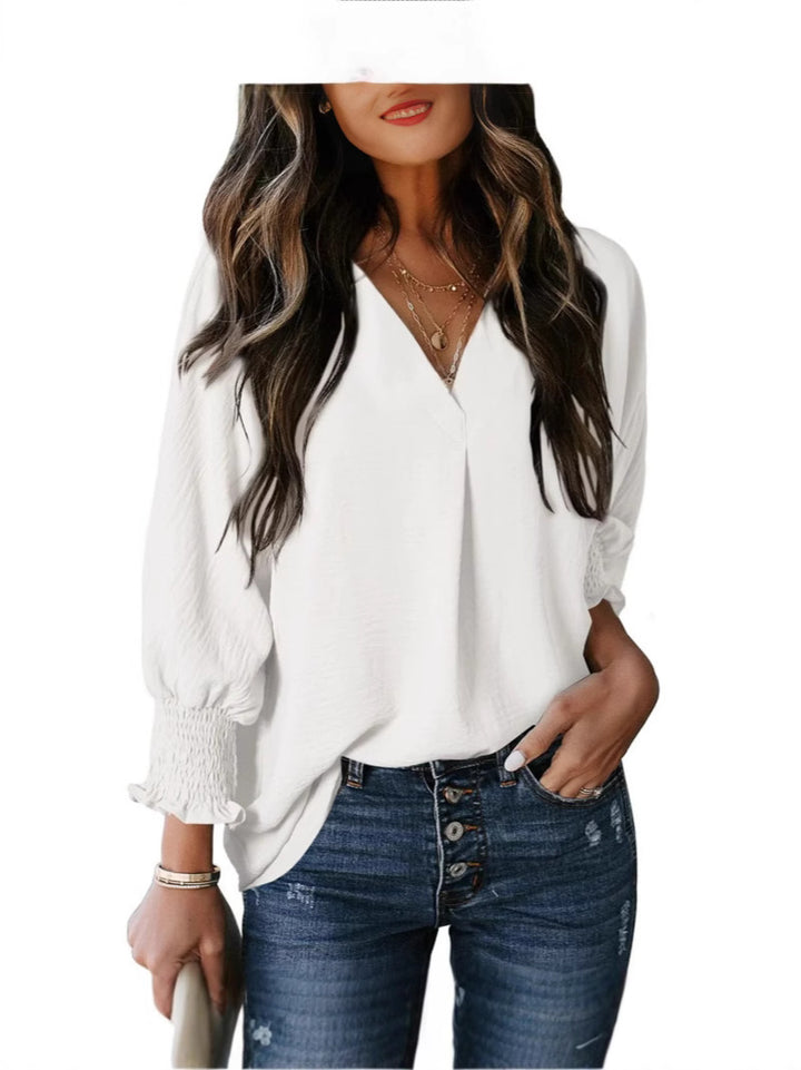 2024 Women's Tunic Top V-Neck Casual Loose Seven-Sleeve Shirt Dress Shirt Top Blouse T-Shirt