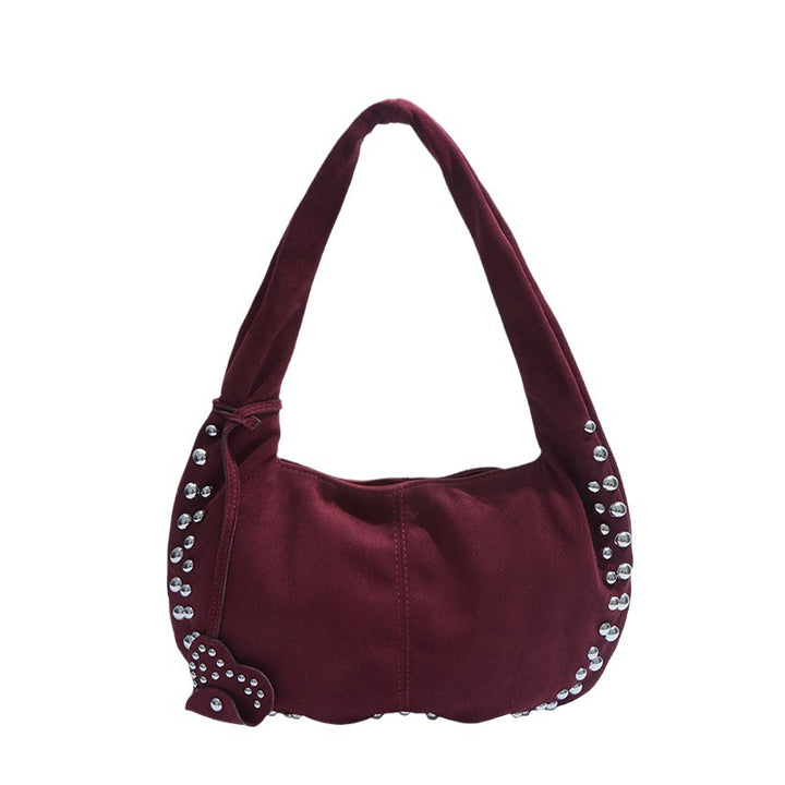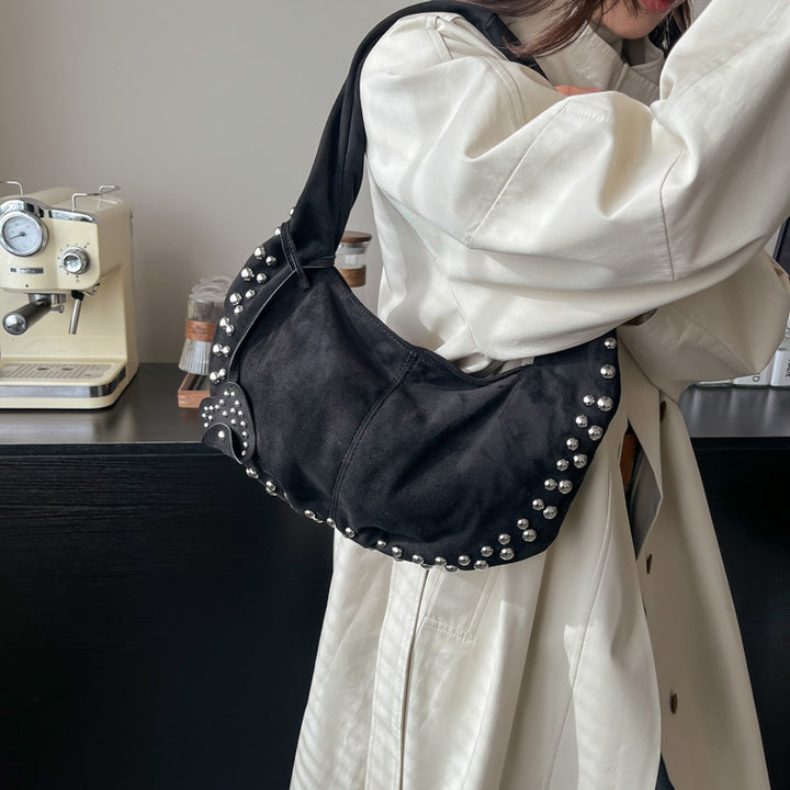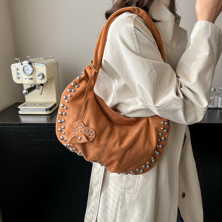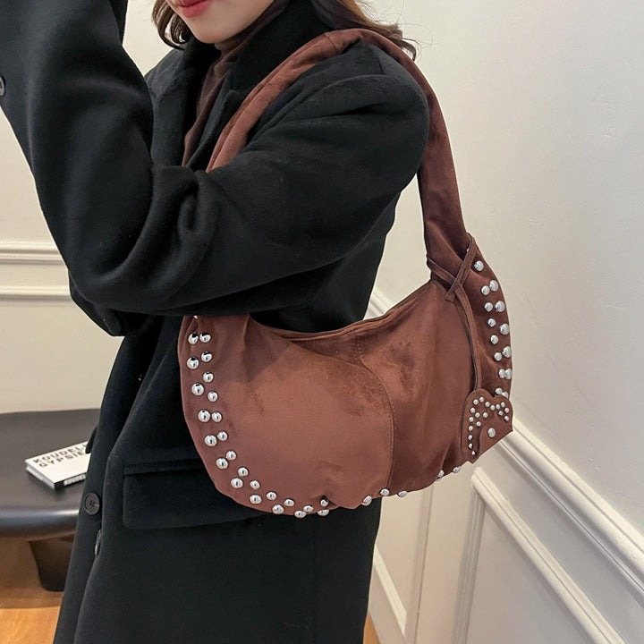 2025 autumn and winter new deerskin velvet women's bag single shoulder diagonal hanging rivets matte crescent armpit casual tote handbag