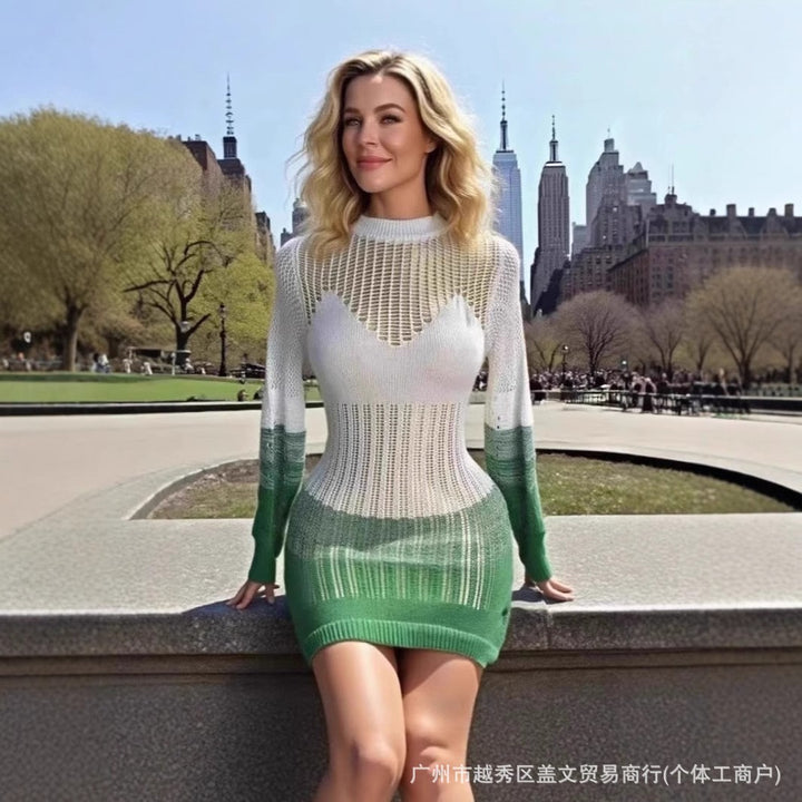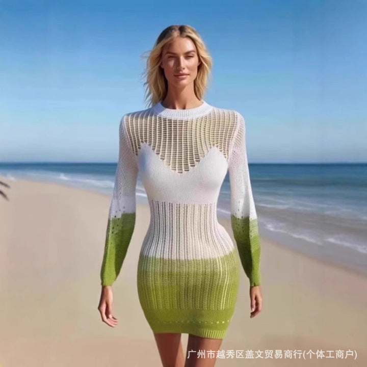 2025 autumn new multi-color hollow knitted dress European and American personality loose beach sunscreen clothing female manufacturer direct