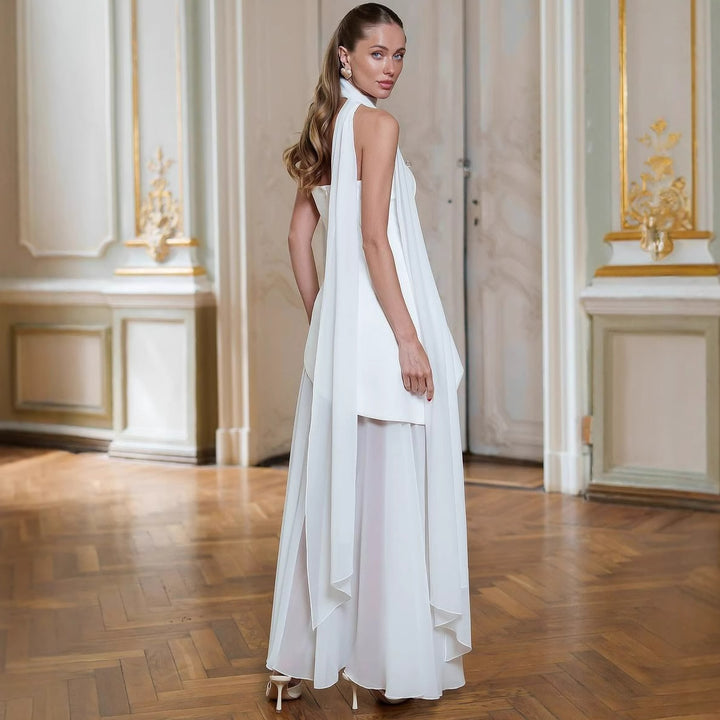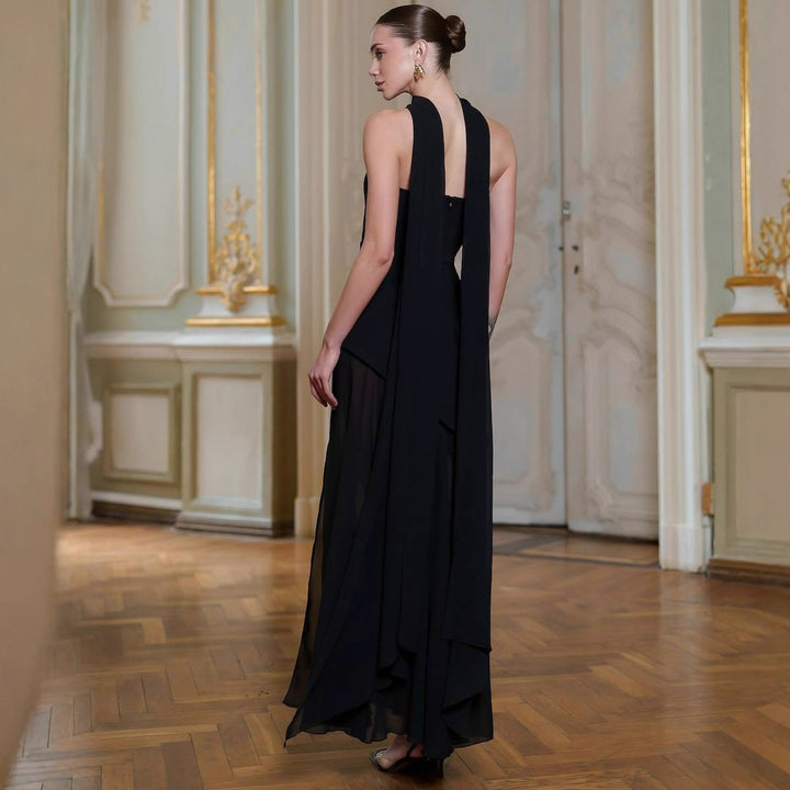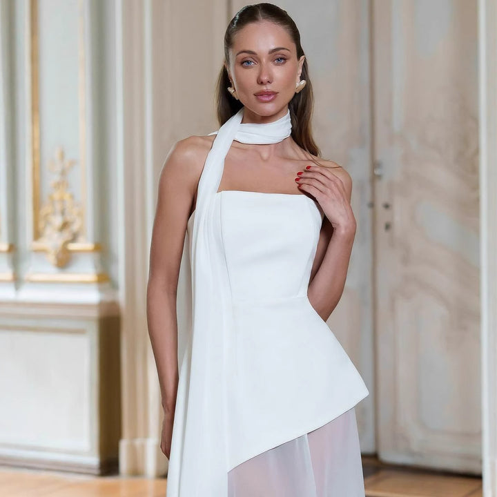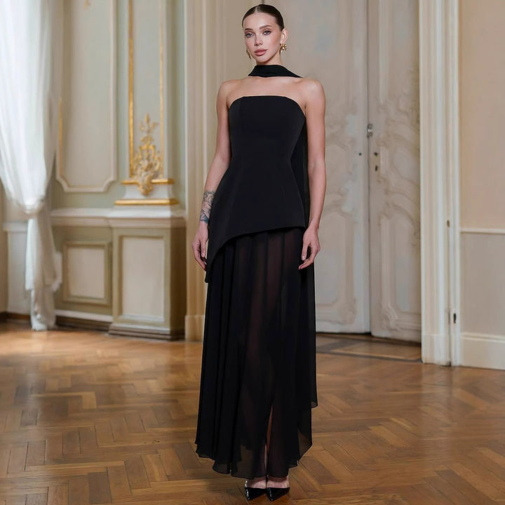 2025 Cross-border European and American women's clothing temperament elegant and sexy sleeveless top mesh skirt new scarf two-piece set