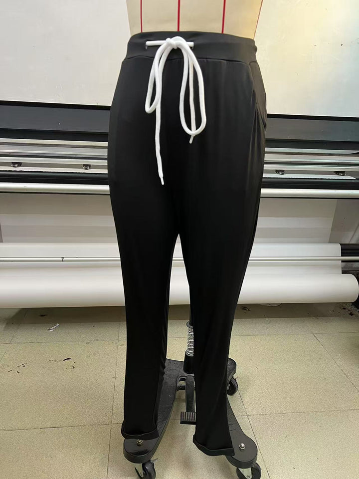 2025 Europe, America, new women's solid color versatile temperament casual trousers with belts and small feet